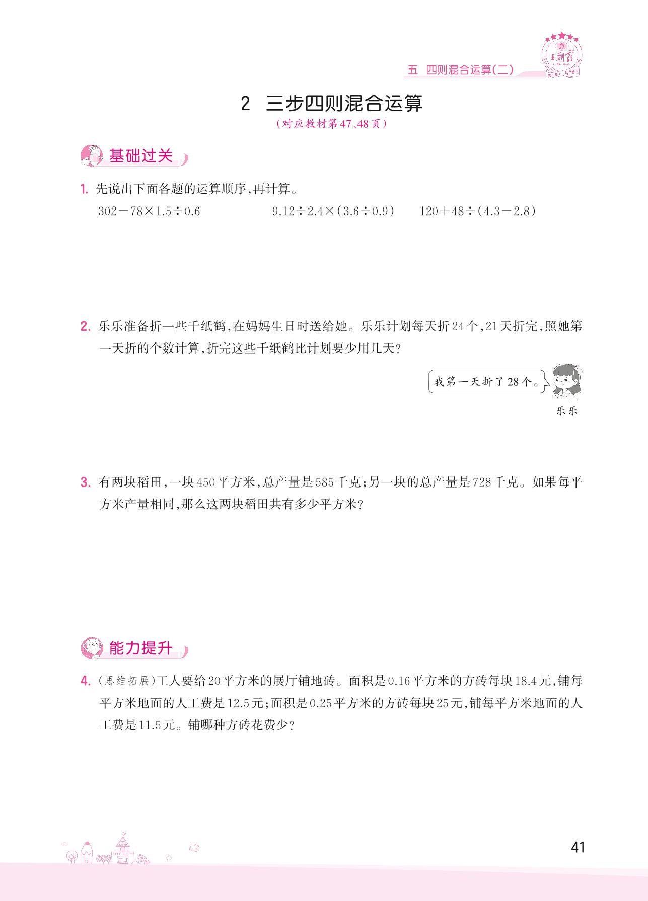 2022上册五年级数学冀教版 五 四则混合运算(二)——2 三步四则混合运算