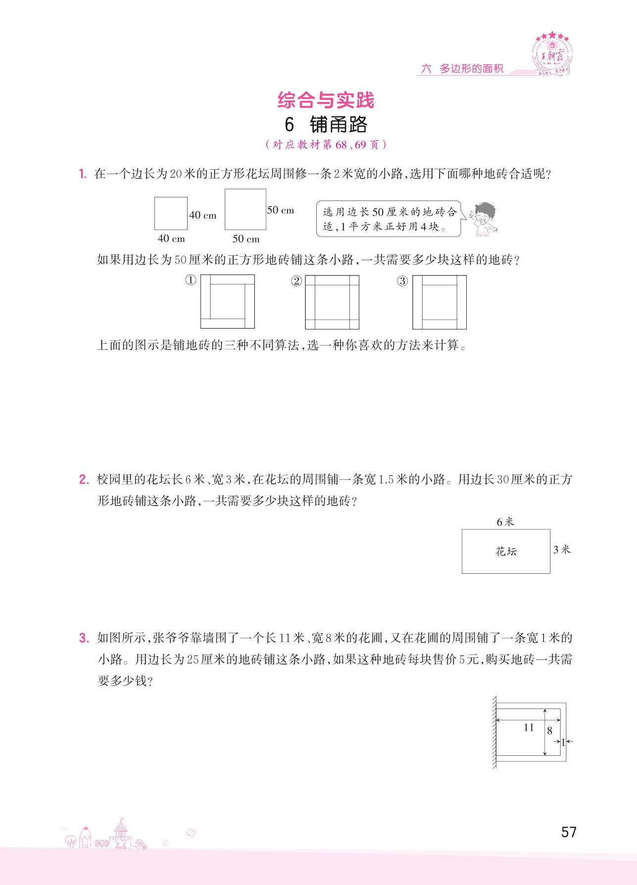 2022上册五年级数学冀教版 六 多边形的面积——6 铺甬路