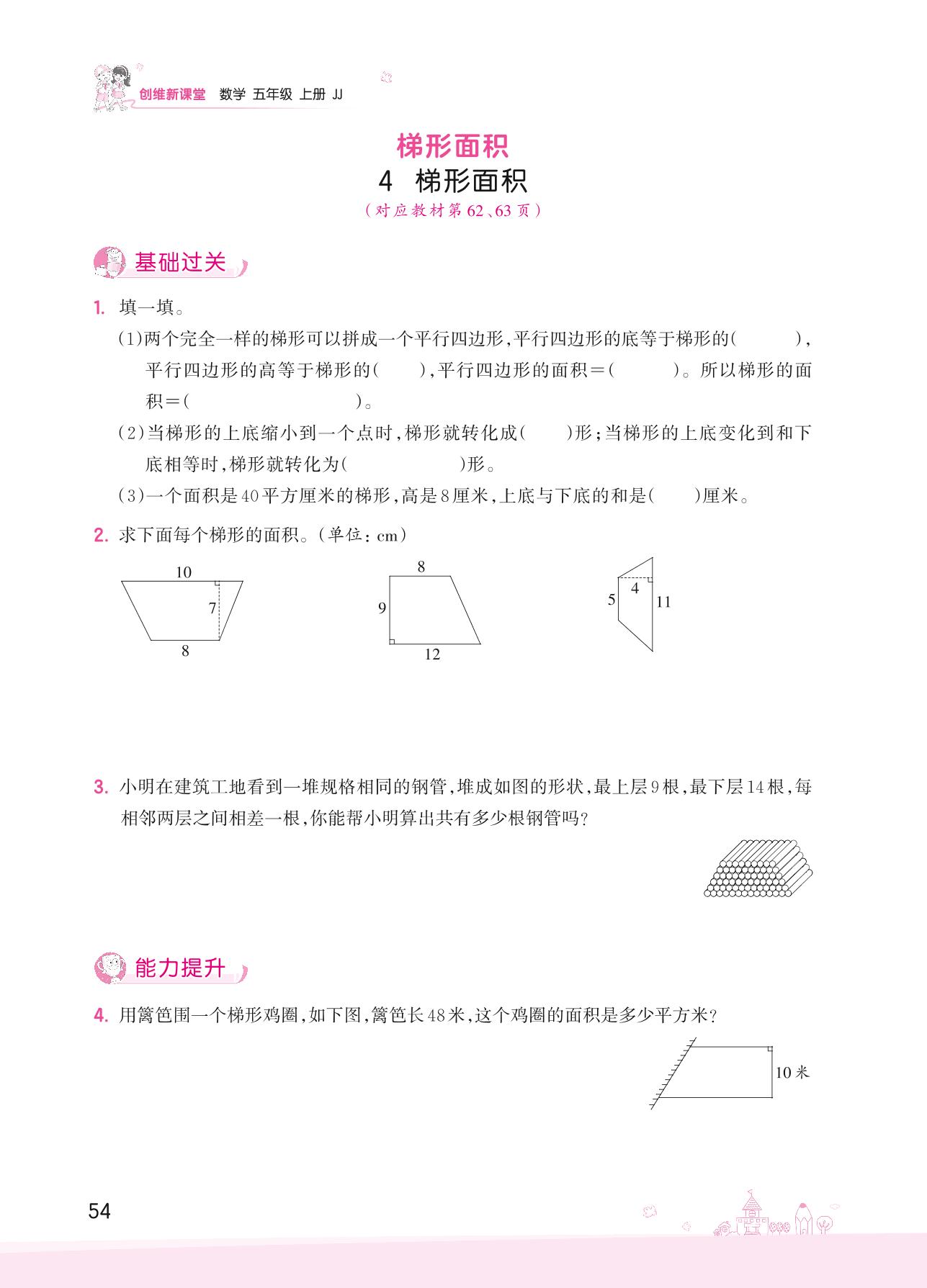 2022上册五年级数学冀教版 六 多边形的面积——4 梯形面积