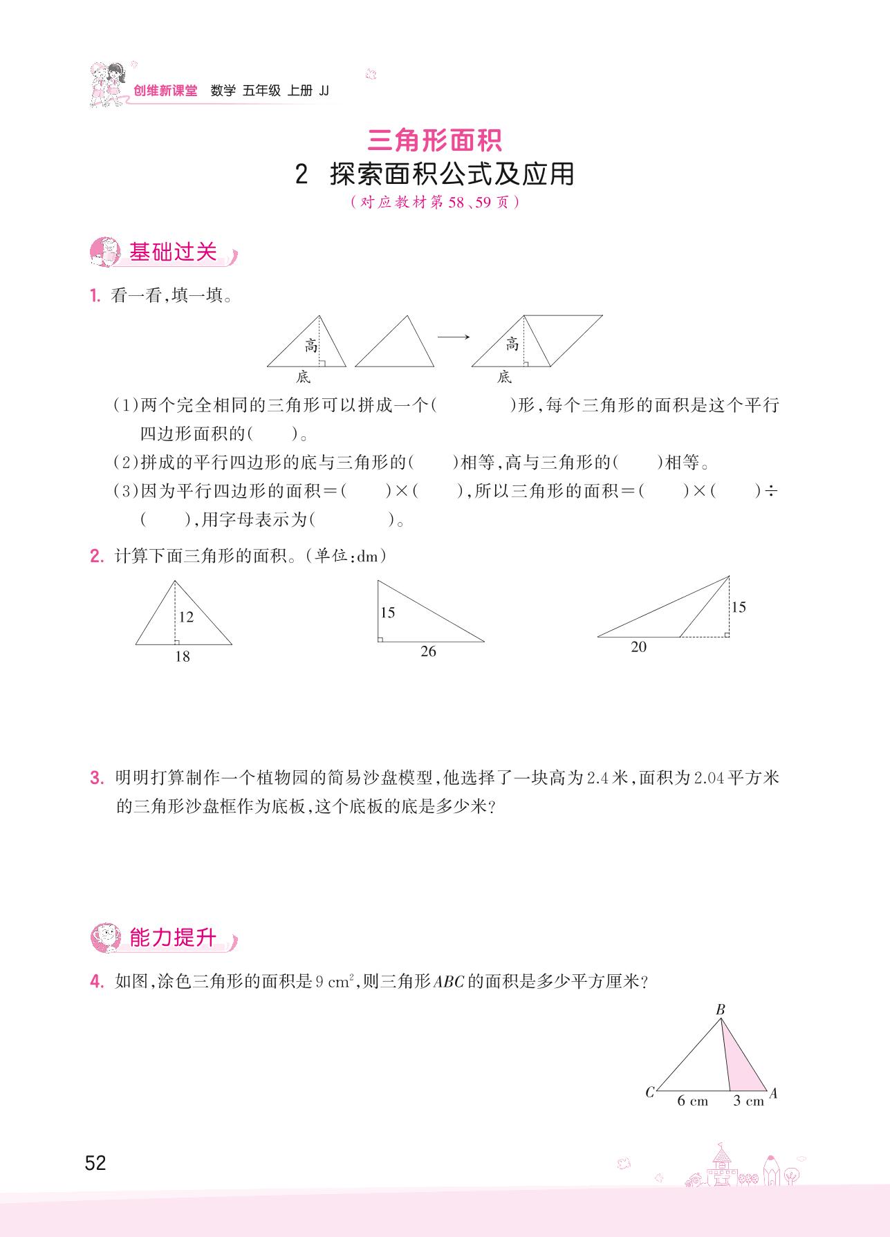 2022上册五年级数学冀教版 六 多边形的面积——2 探索面积公式及应用