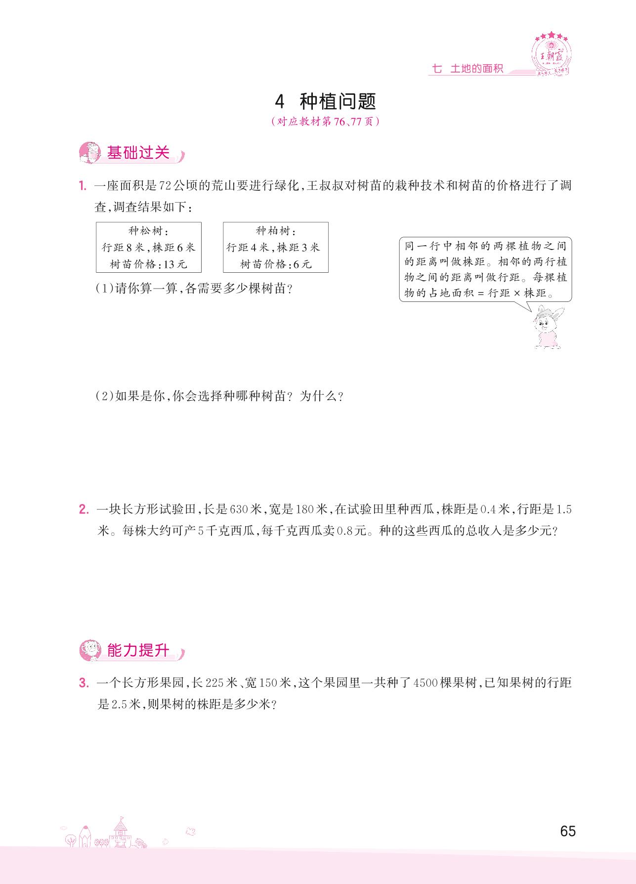 2022上册五年级数学冀教版 七 土地的面积——4 种植问题