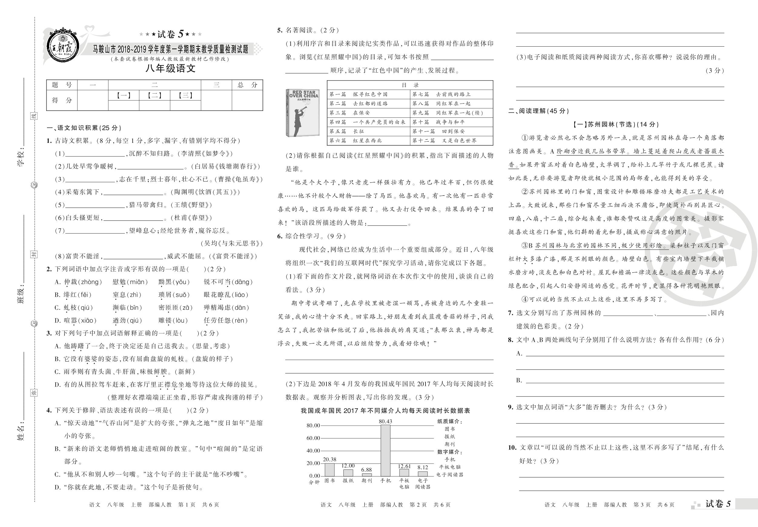2018-2019学年第一学期马鞍山市八年级语文试卷(人教版)【5】