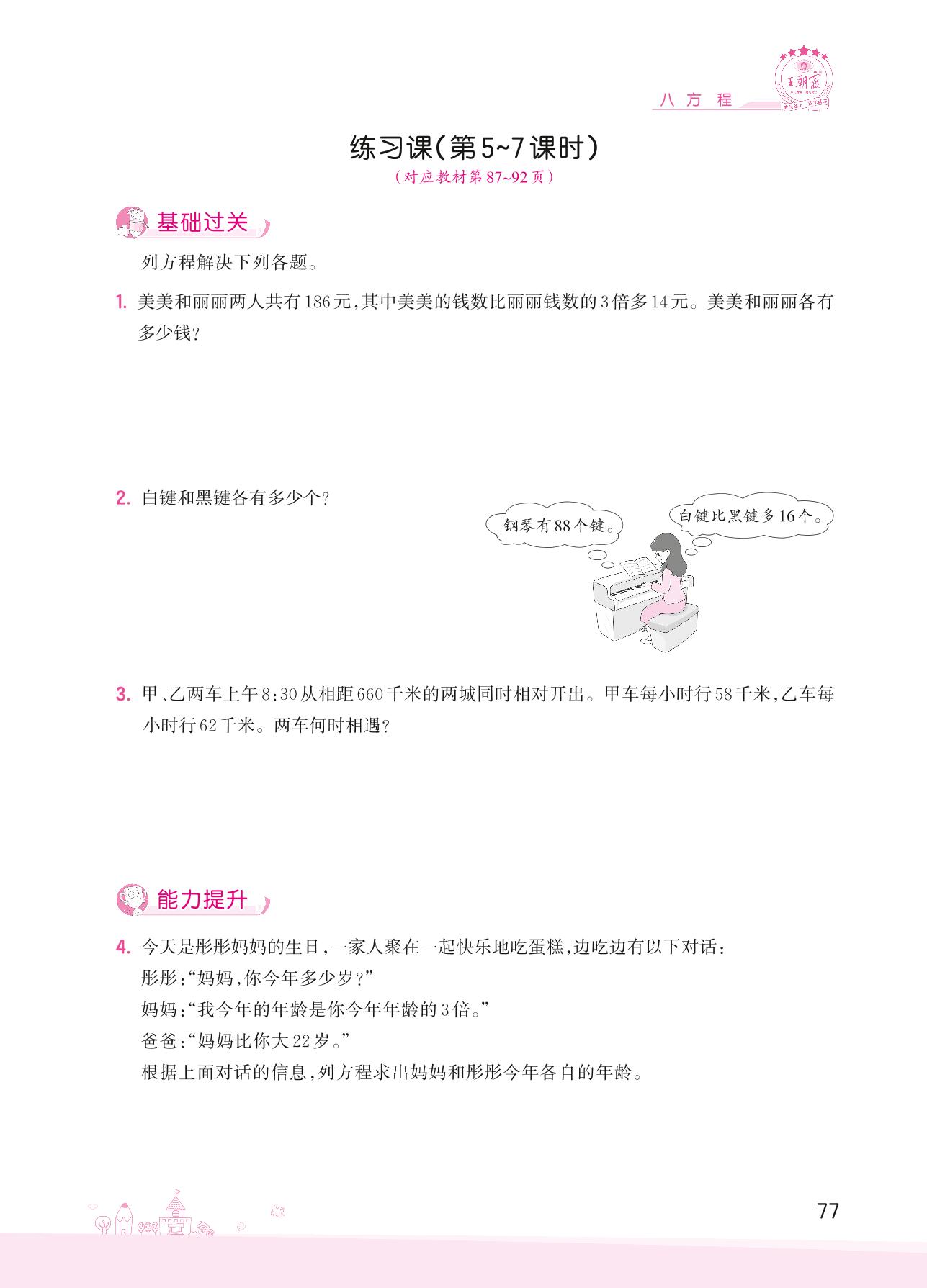 2022上册五年级数学冀教版 八 方程——练习课(第5~7课时)
