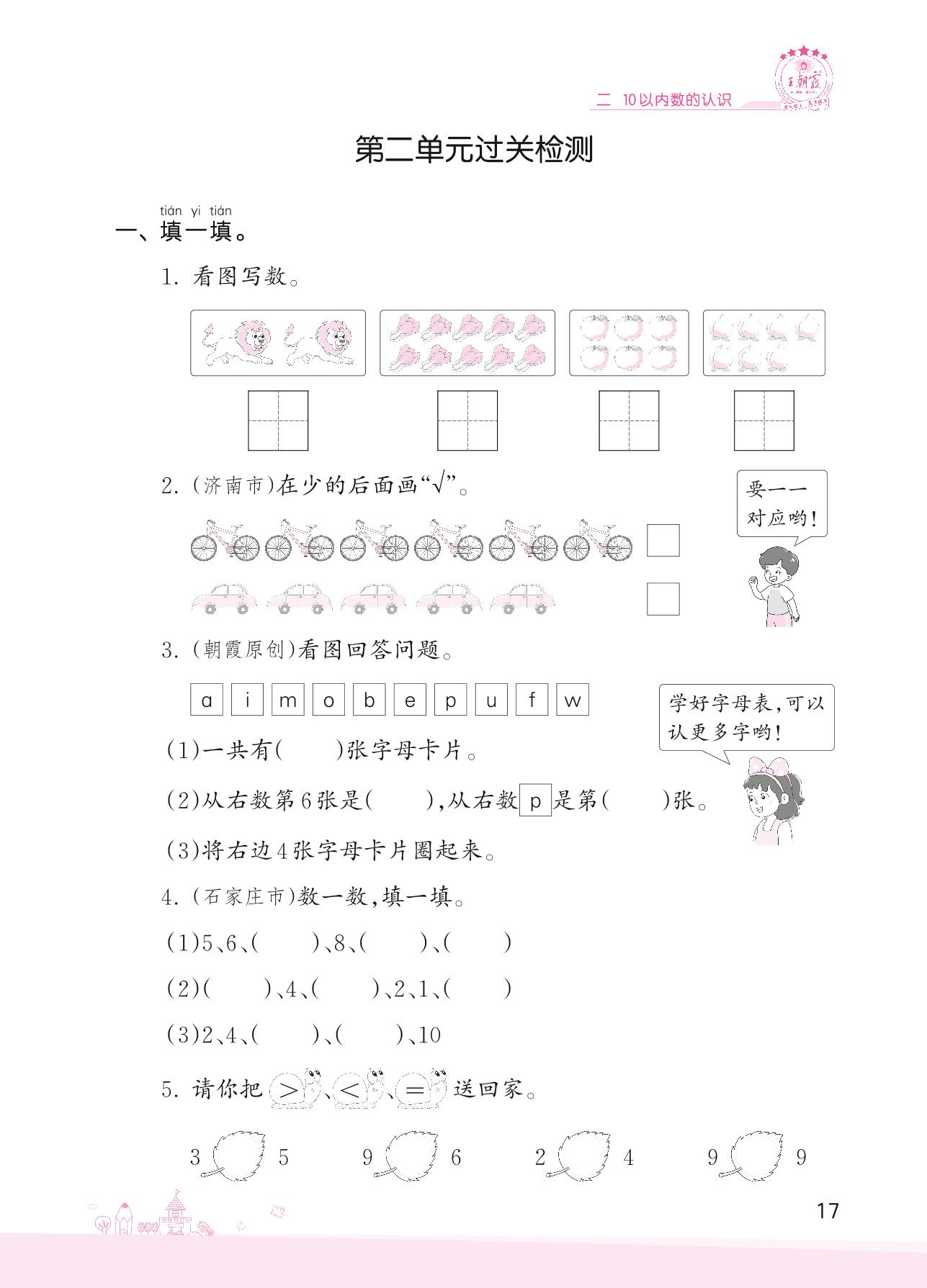 2022上册一年级数学冀教版 二 10以内数的认识——第二单元过关检测