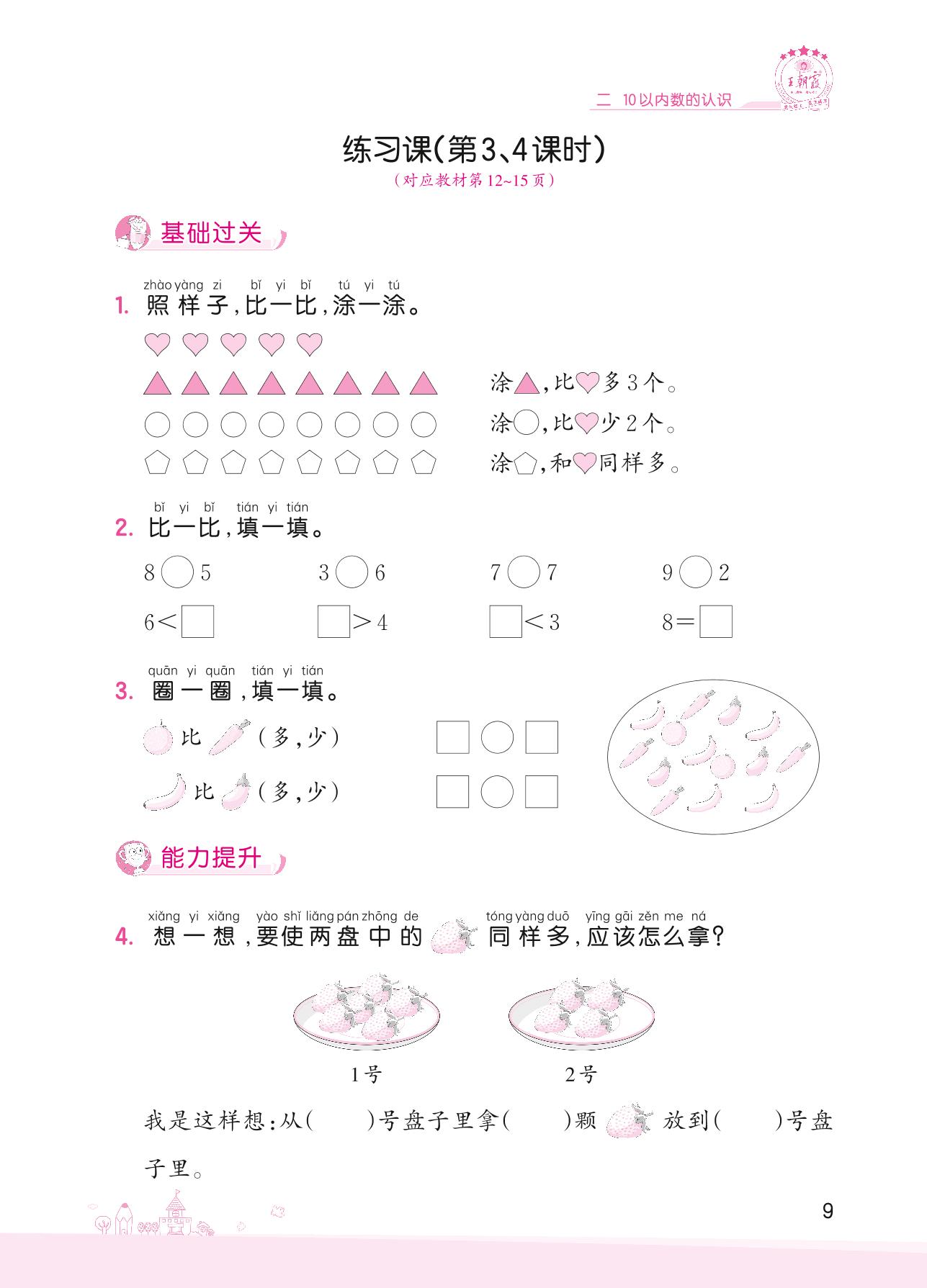 2022上册一年级数学冀教版 二 10以内数的认识——练习课(第3、4课时)