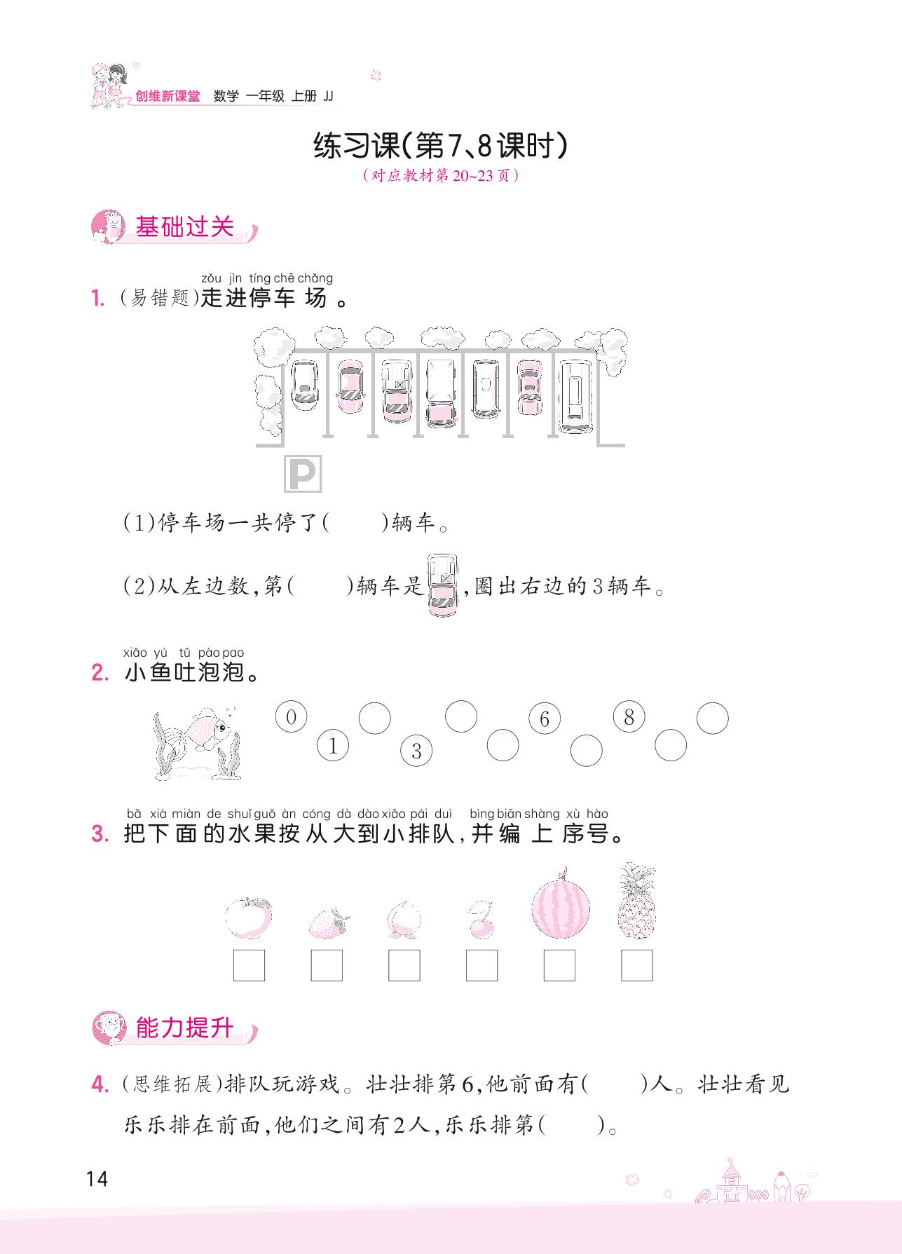 2022上册一年级数学冀教版 二 10以内数的认识——练习课(第7、8课时)