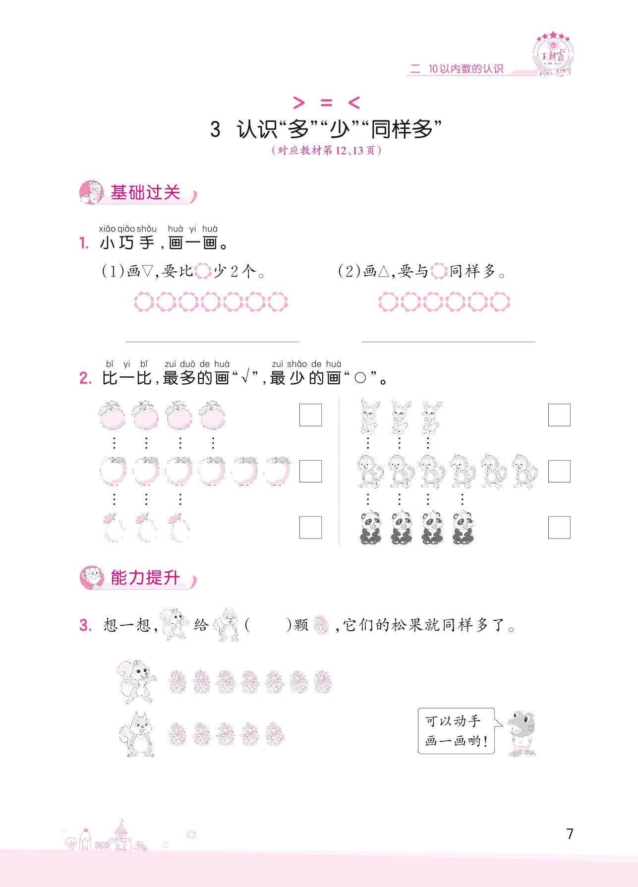 2022上册一年级数学冀教版 二 10以内数的认识——3 认识“多”“少”“同样多”