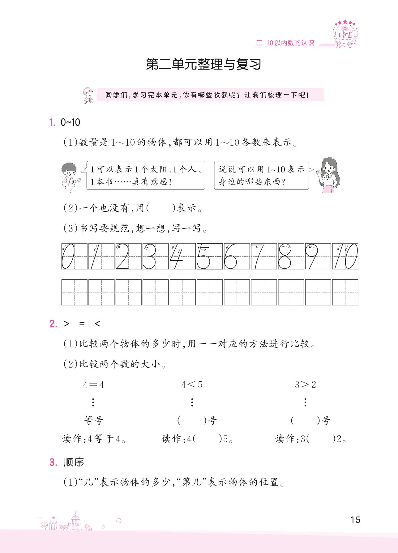 2022上册一年级数学冀教版 二 10以内数的认识——第二单元整理与复习