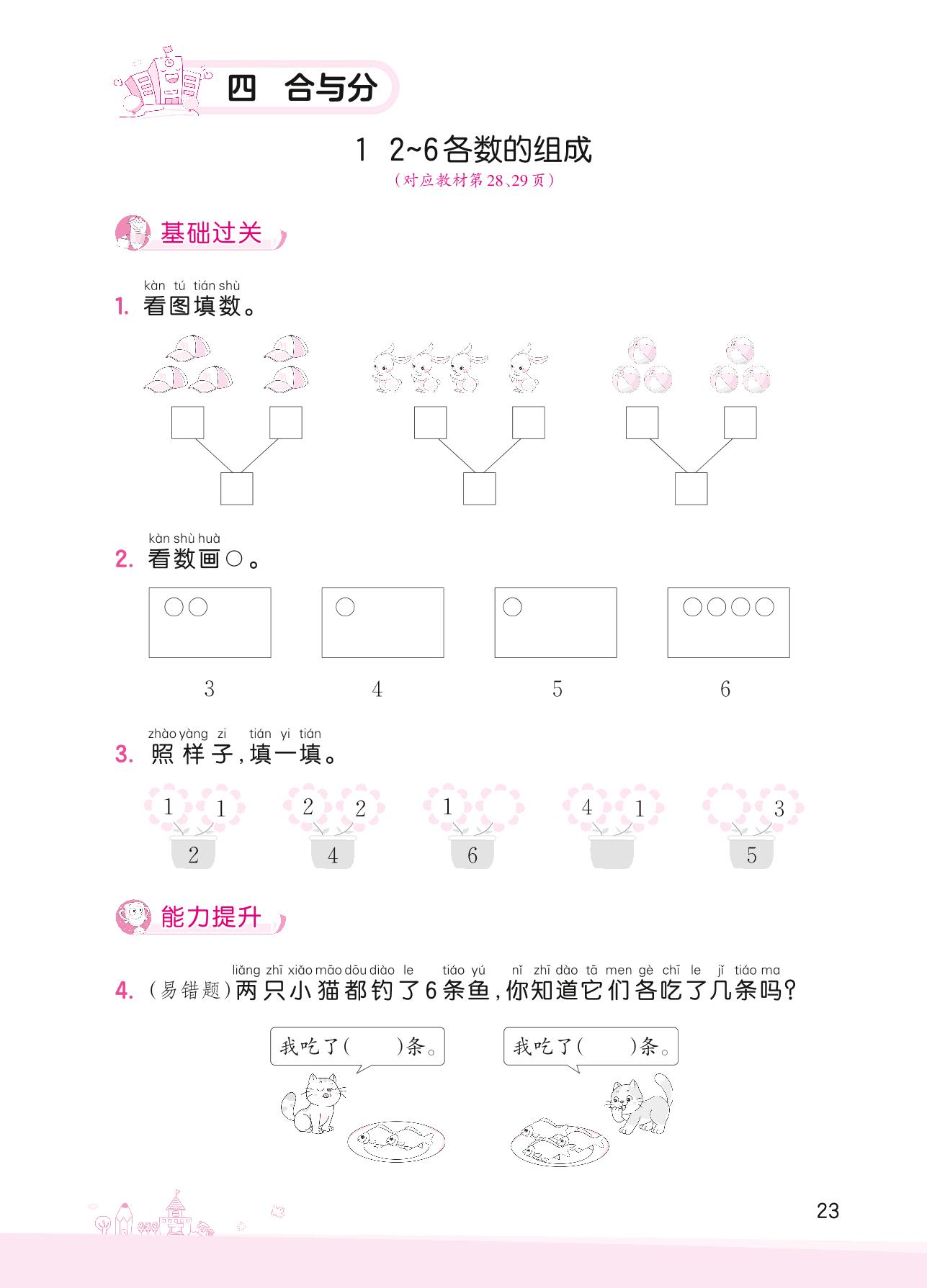 2022上册一年级数学冀教版 四 合与分——1 2~6各数的组成