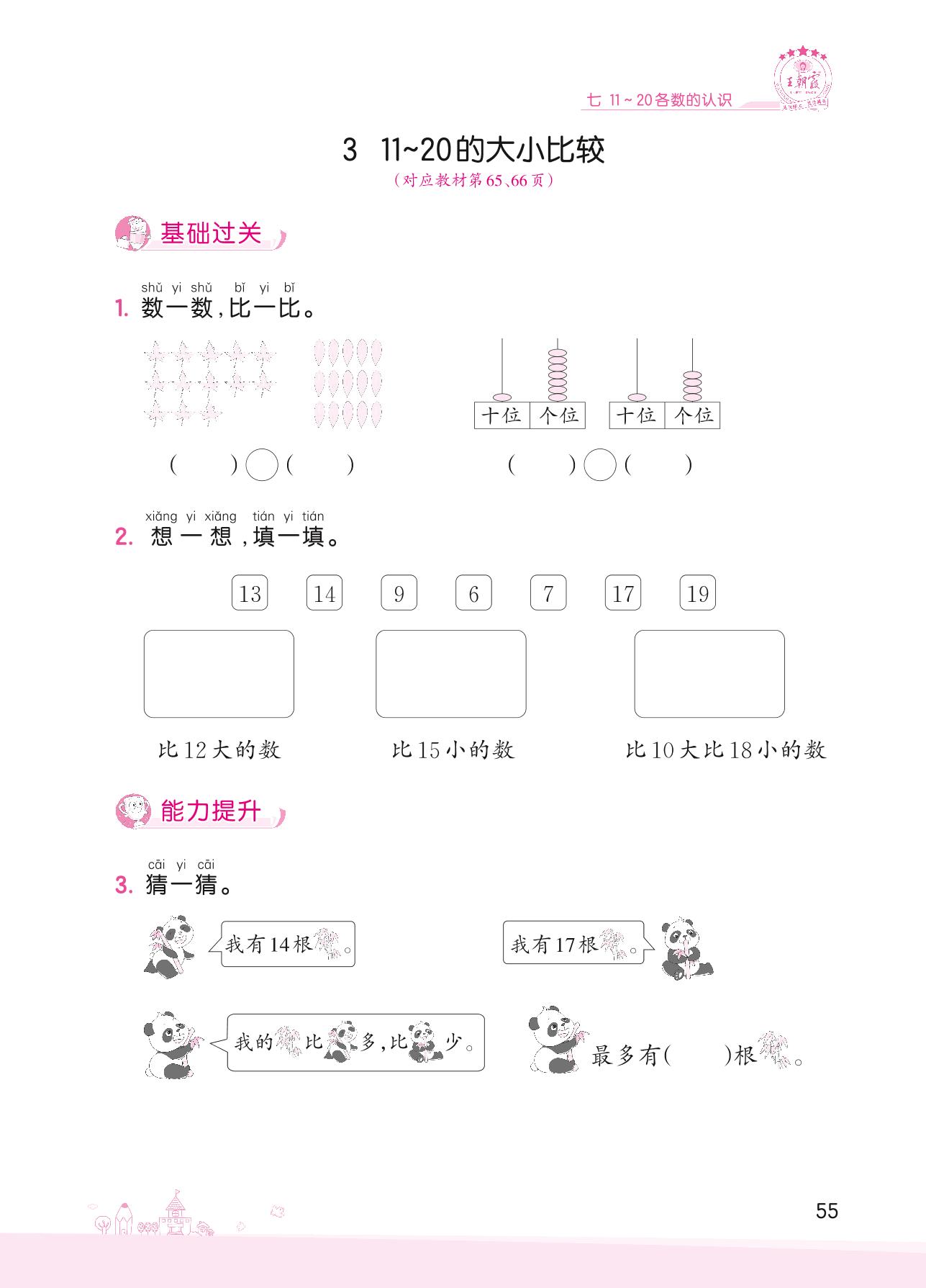 2022上册一年级数学冀教版 七 11~20各数的认识——3 11~20的大小比较