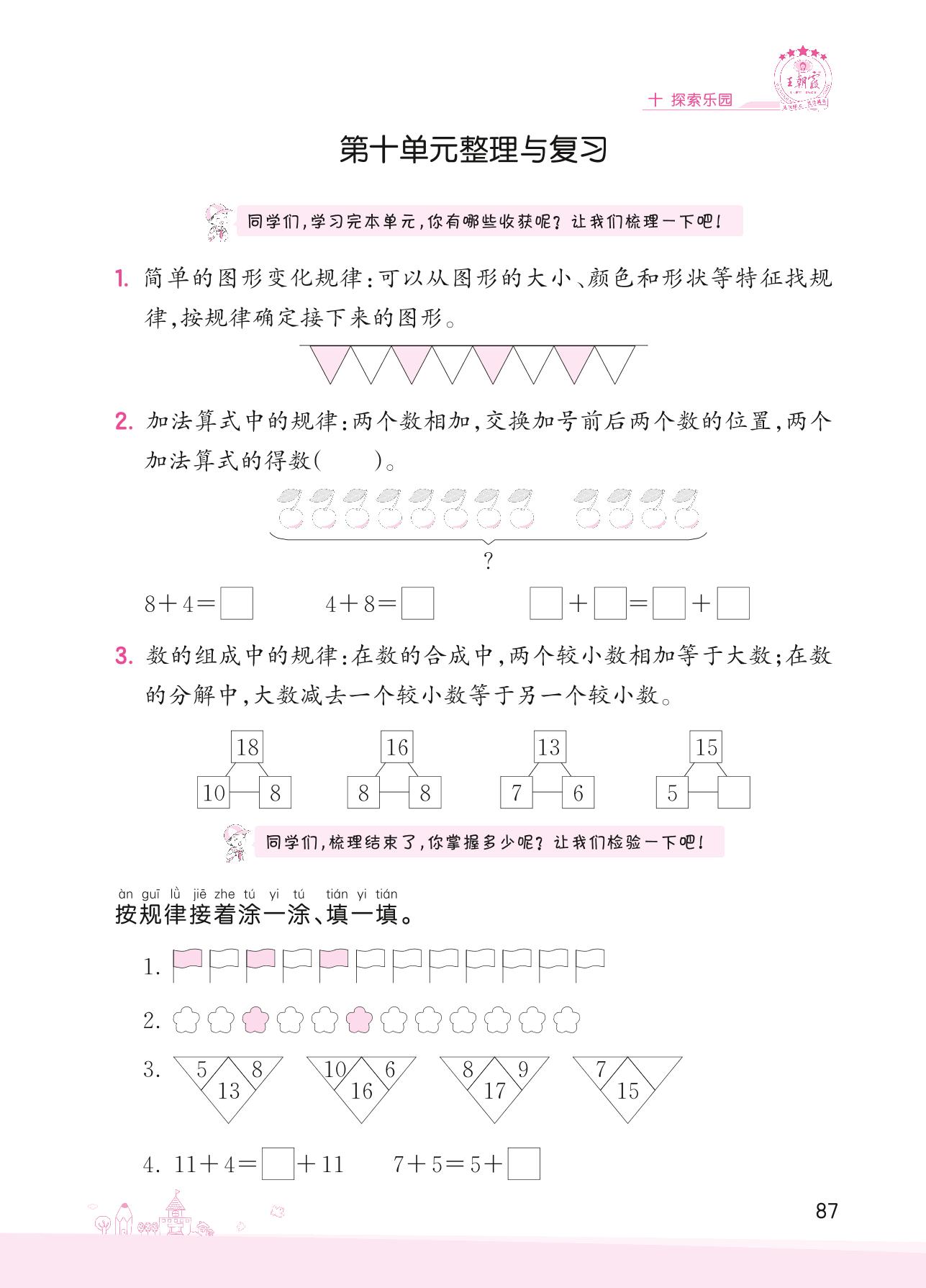 2022上册一年级数学冀教版 十 探索乐园——第十单元整理与复习