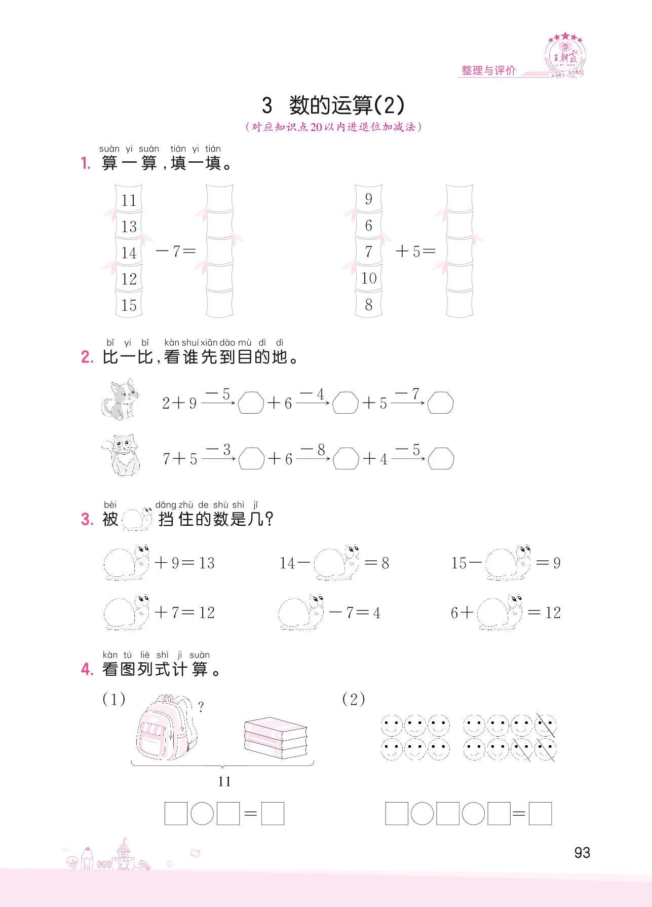 2022上册一年级数学冀教版 整理与评价——3 数的运算(2)