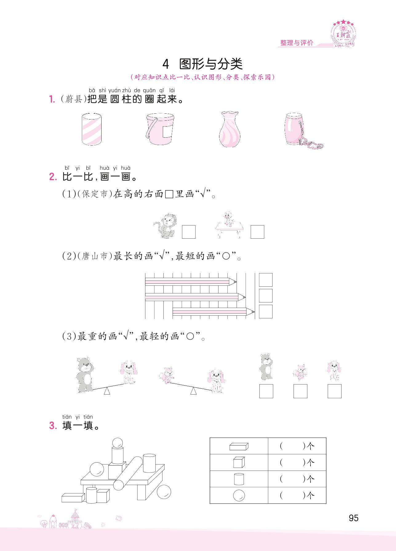 2022上册一年级数学冀教版 整理与评价——4 图形与分类