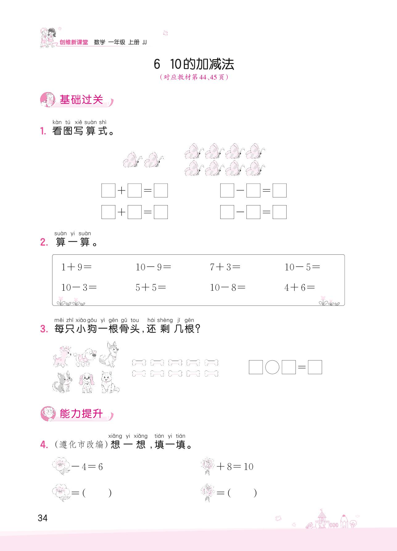 2022上册一年级数学冀教版 五 10以内的加法和减法——6 10的加减法