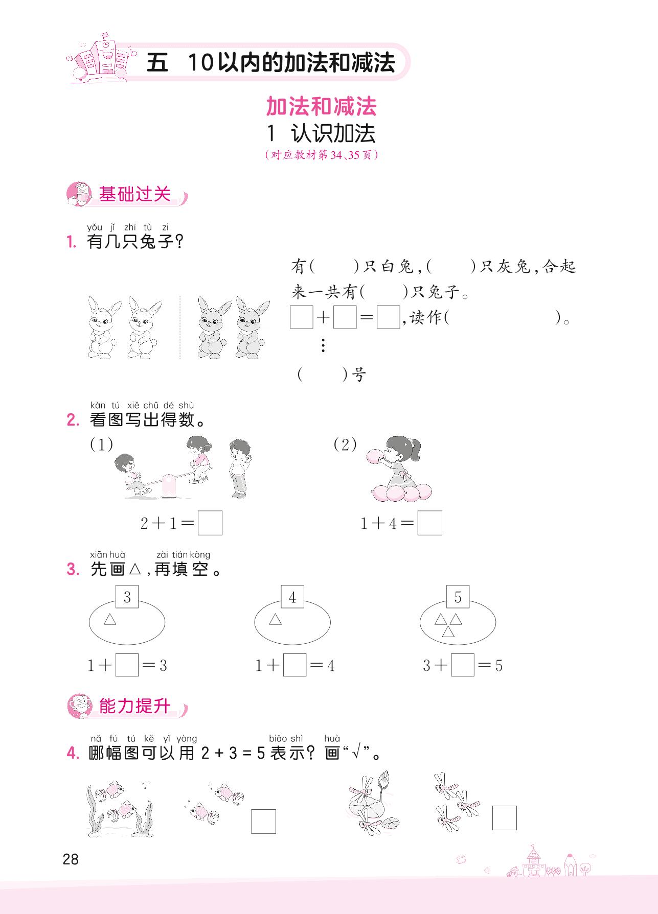 2022上册一年级数学冀教版 五 10以内的加法和减法——1 认识加法