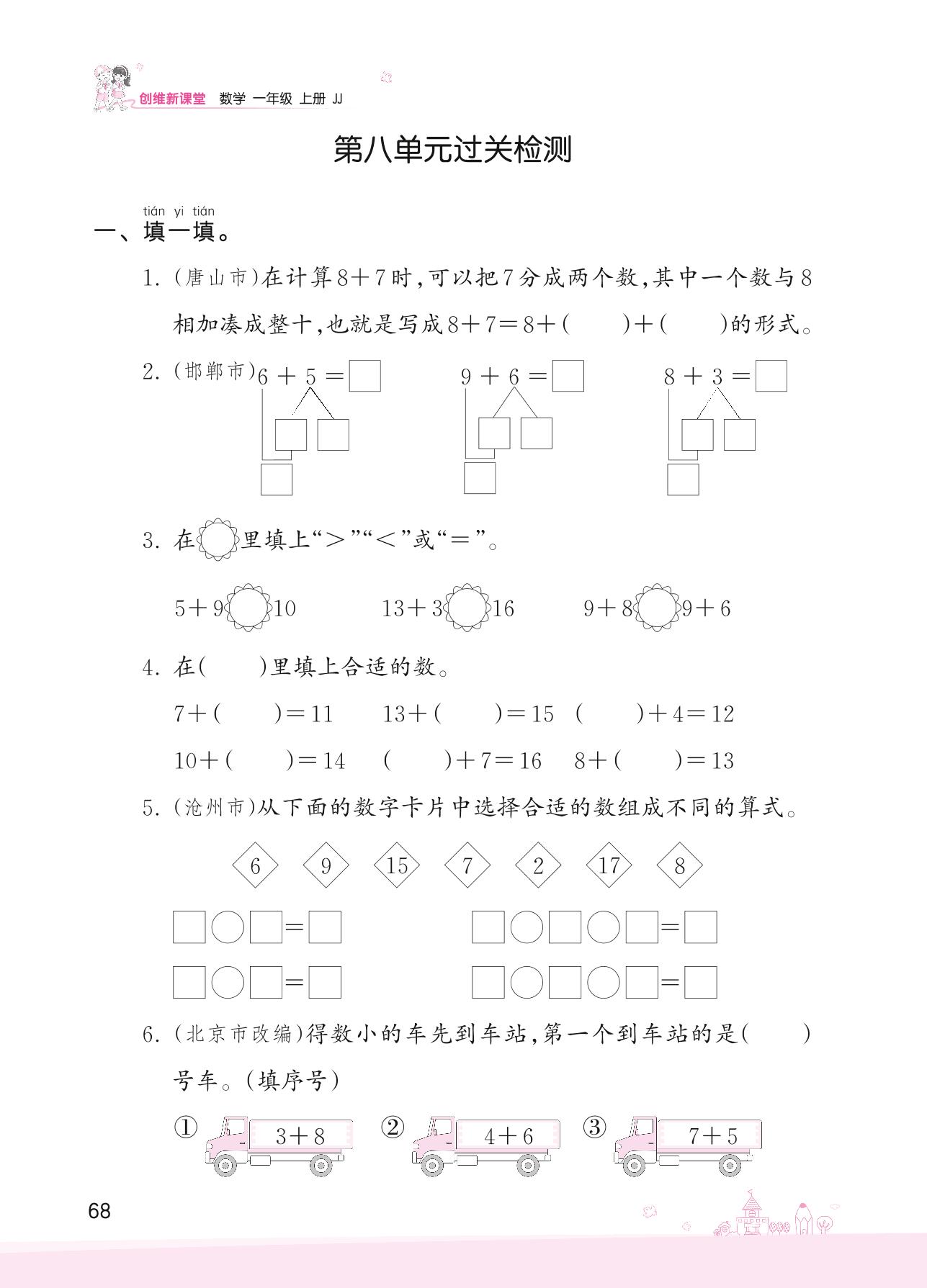 一年级数学冀教版上册单元卷