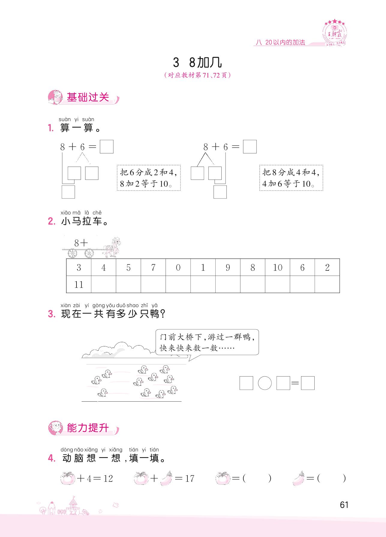 2022上册一年级数学冀教版 八 20以内的加法——3 8加几