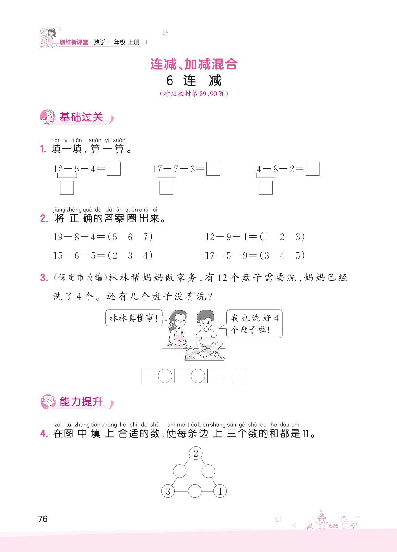2022上册一年级数学冀教版 九 20以内的减法——6 连减