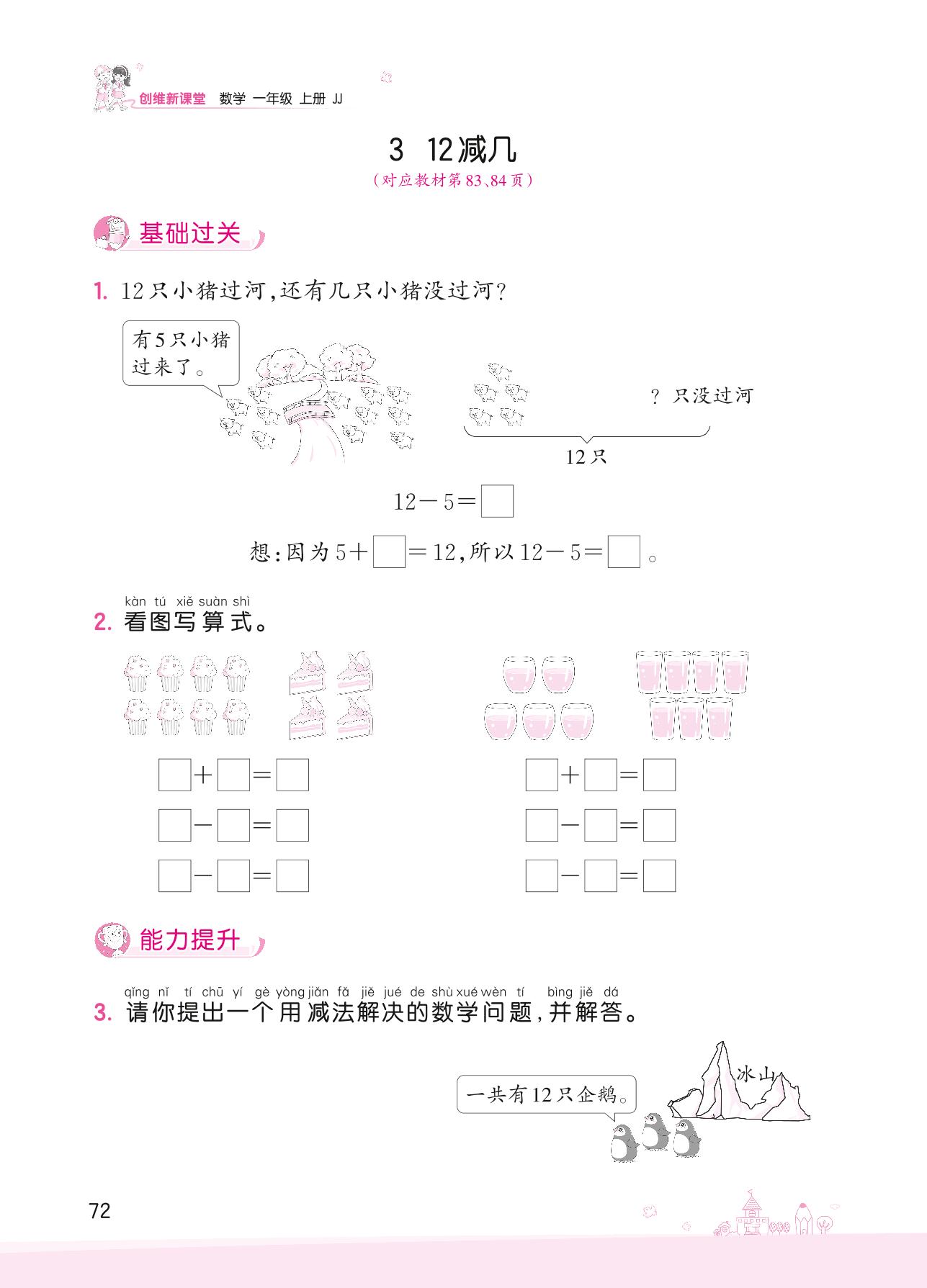 2022上册一年级数学冀教版 九 20以内的减法——3 12减几