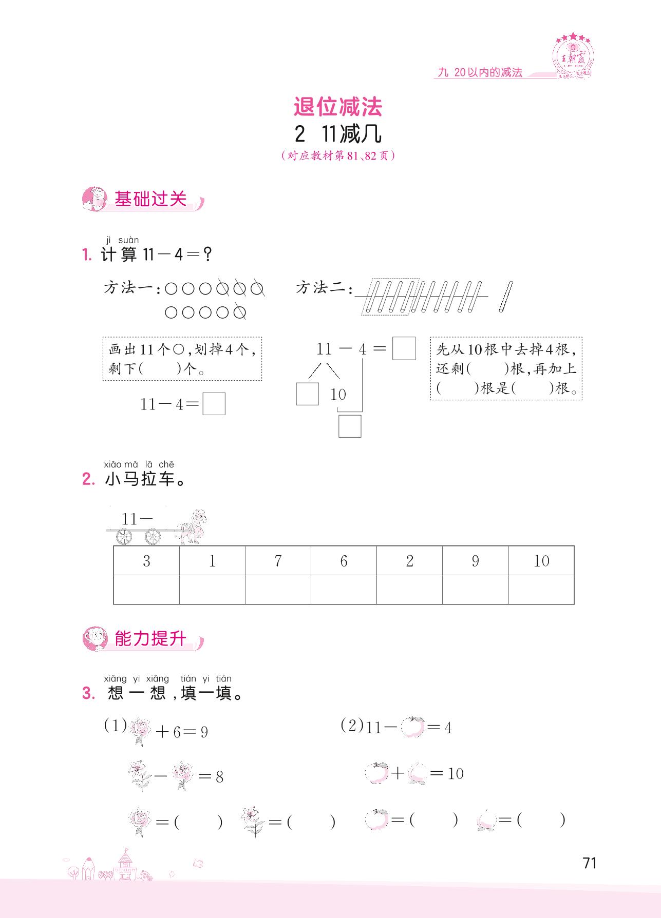 2022上册一年级数学冀教版 九 20以内的减法——2 11减几