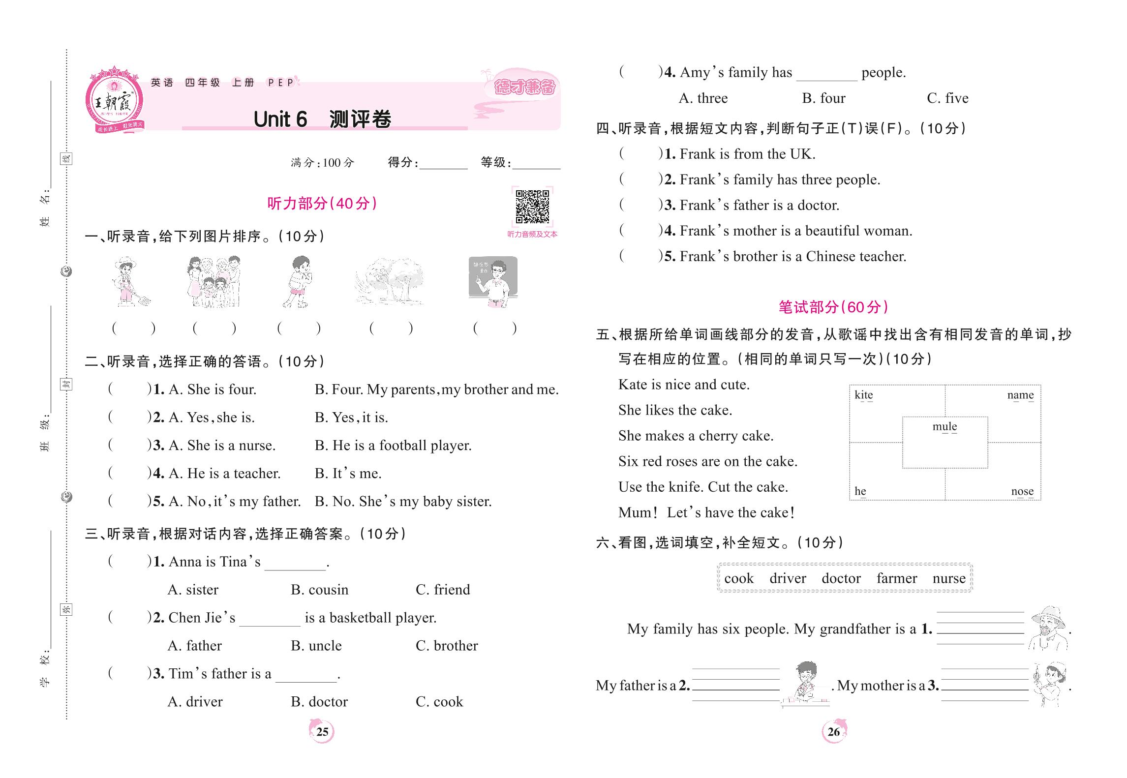 2022上册四年级英语人教PEP版 Unit 6 测评卷