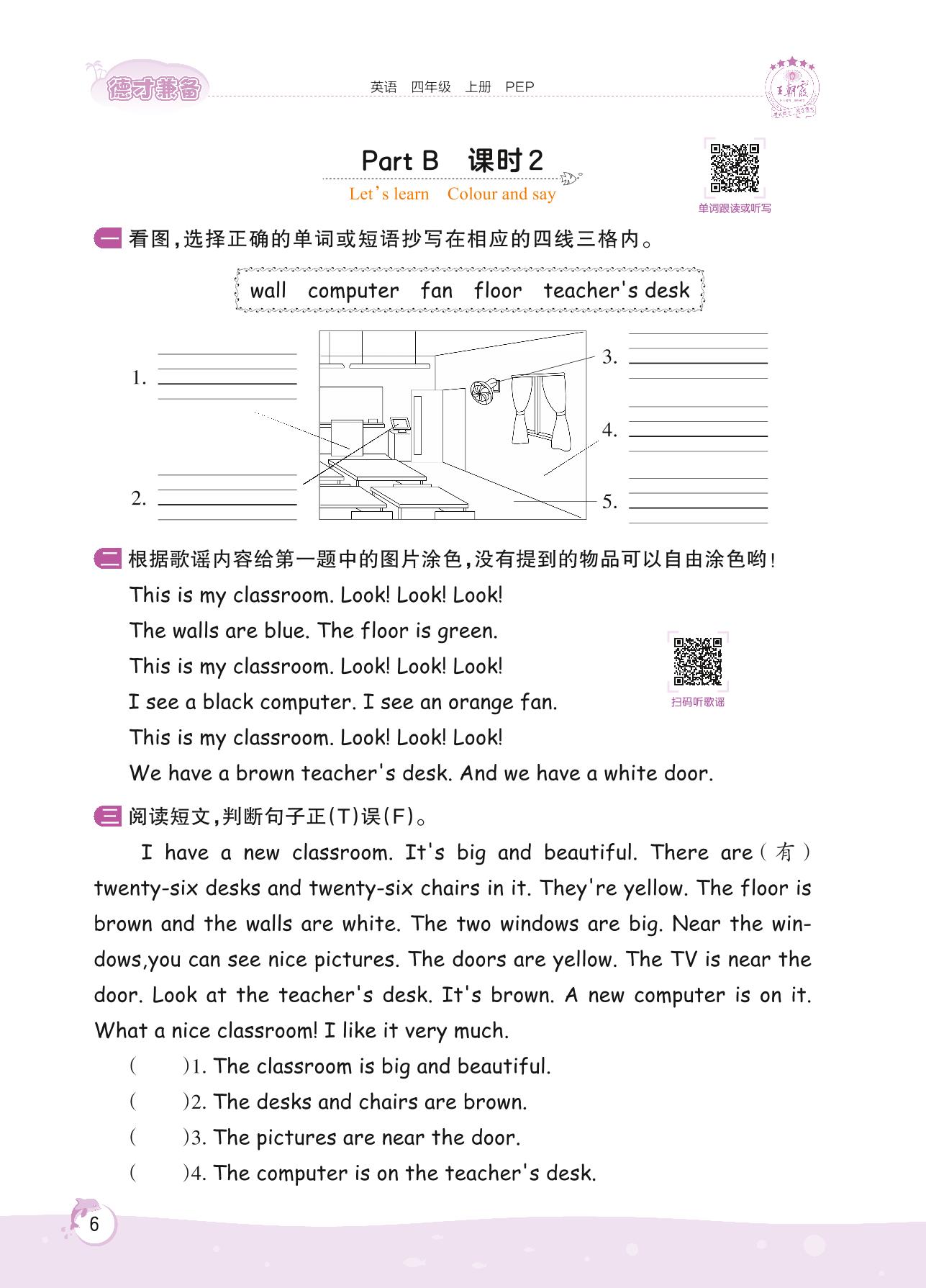 2022上册四年级英语人教PEP版 Unit 1 Part B—课时 2 Let’s learn Colour and say