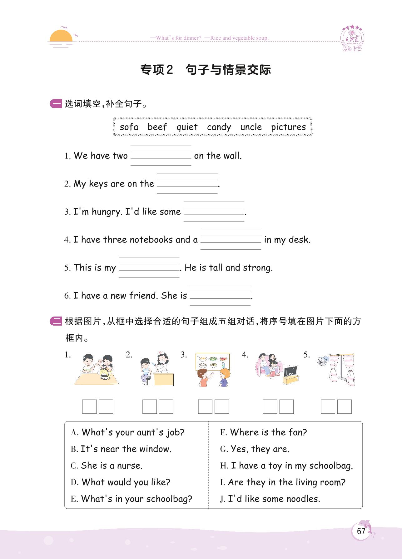 2022上册四年级英语人教PEP版 专项 2 句子与情景交际
