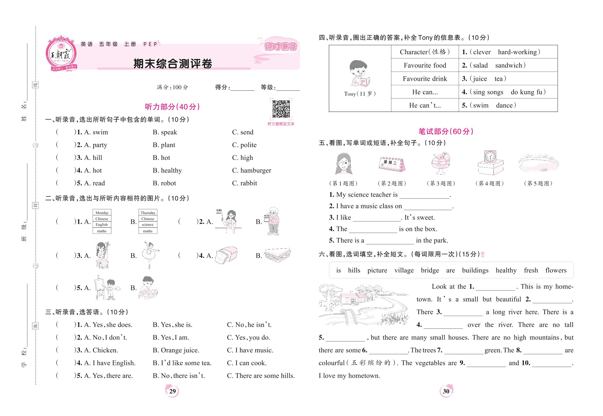 2022上册五年级英语人教PEP版 期末综合测评卷
