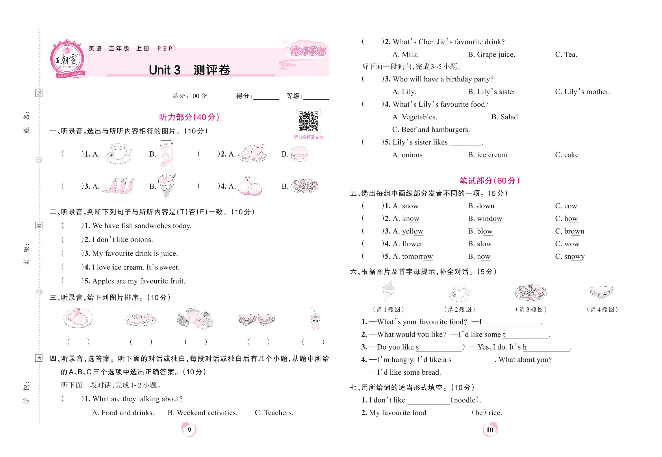 五年级英语人教PEP版(三起始)上册单元卷