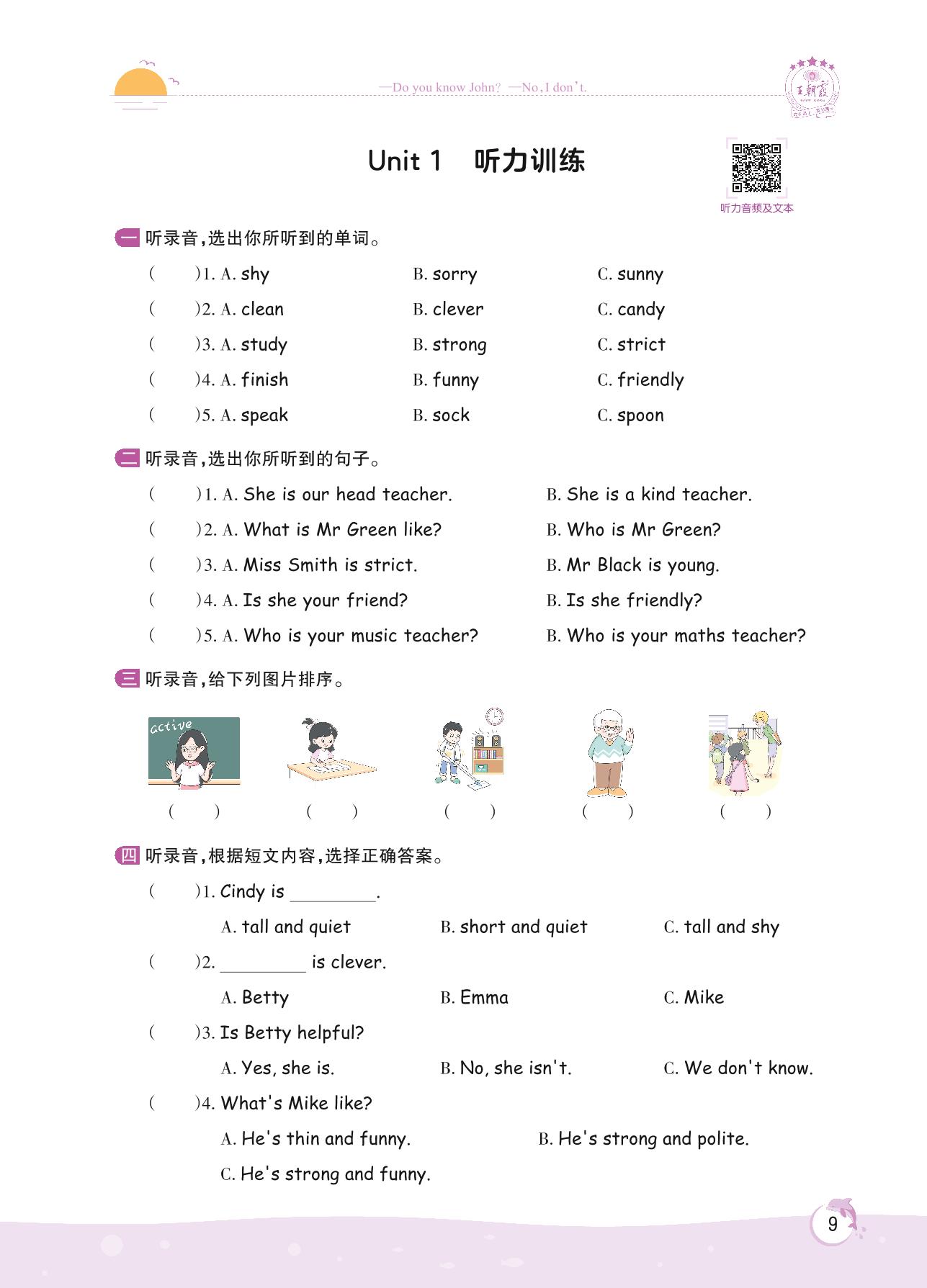 2022上册五年级英语人教PEP版 Unit 1 听力训练