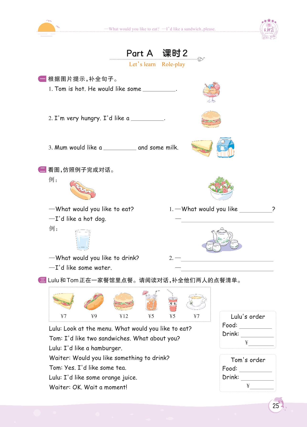 2022上册五年级英语人教PEP版 Unit 3 Part A—课时 2 Let’s learn Role-play