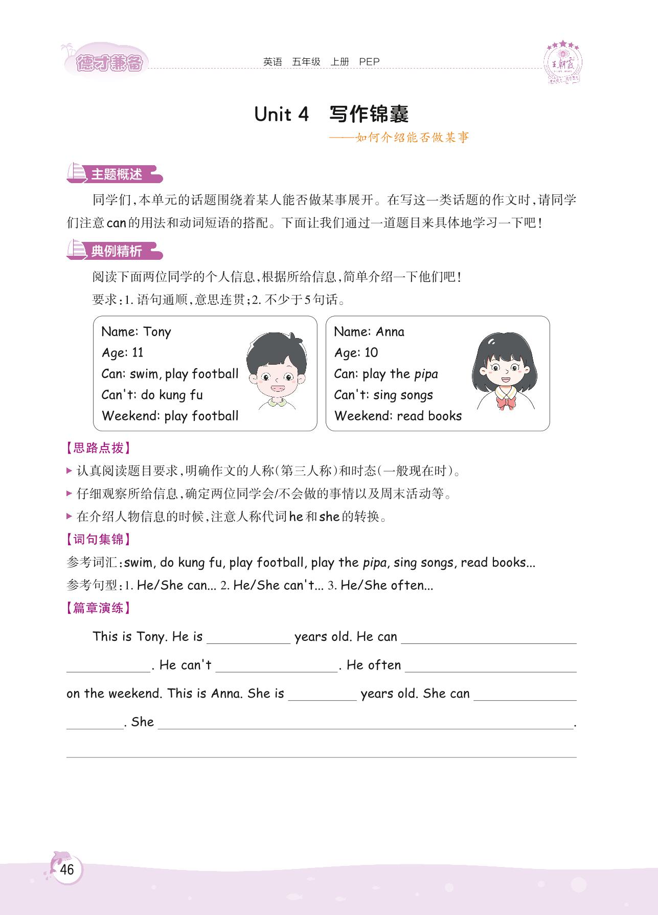 2022上册五年级英语人教PEP版 Unit 4 写作锦囊