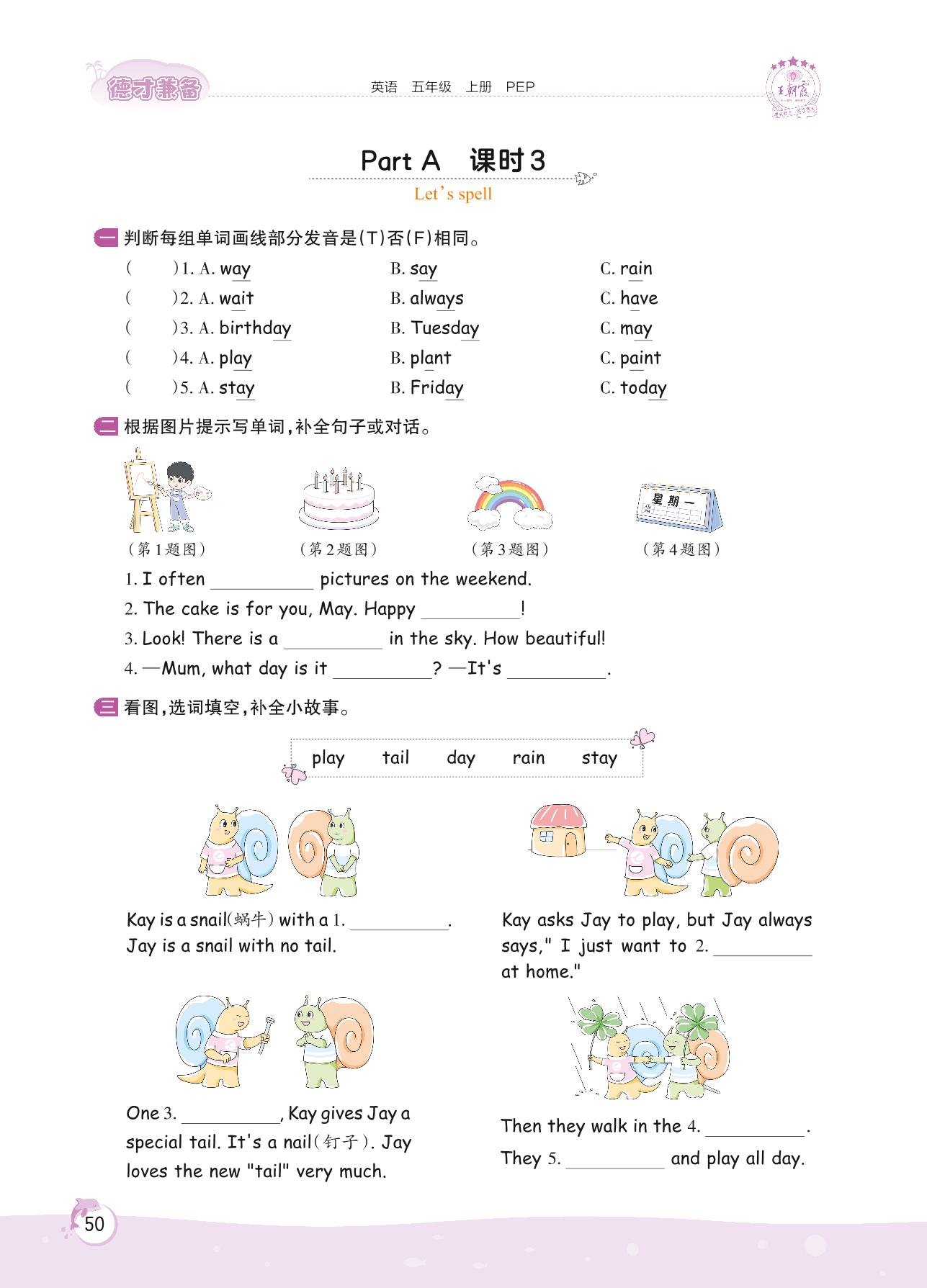 2022上册五年级英语人教PEP版 Unit 5 Part A—课时 3 Let’s spell
