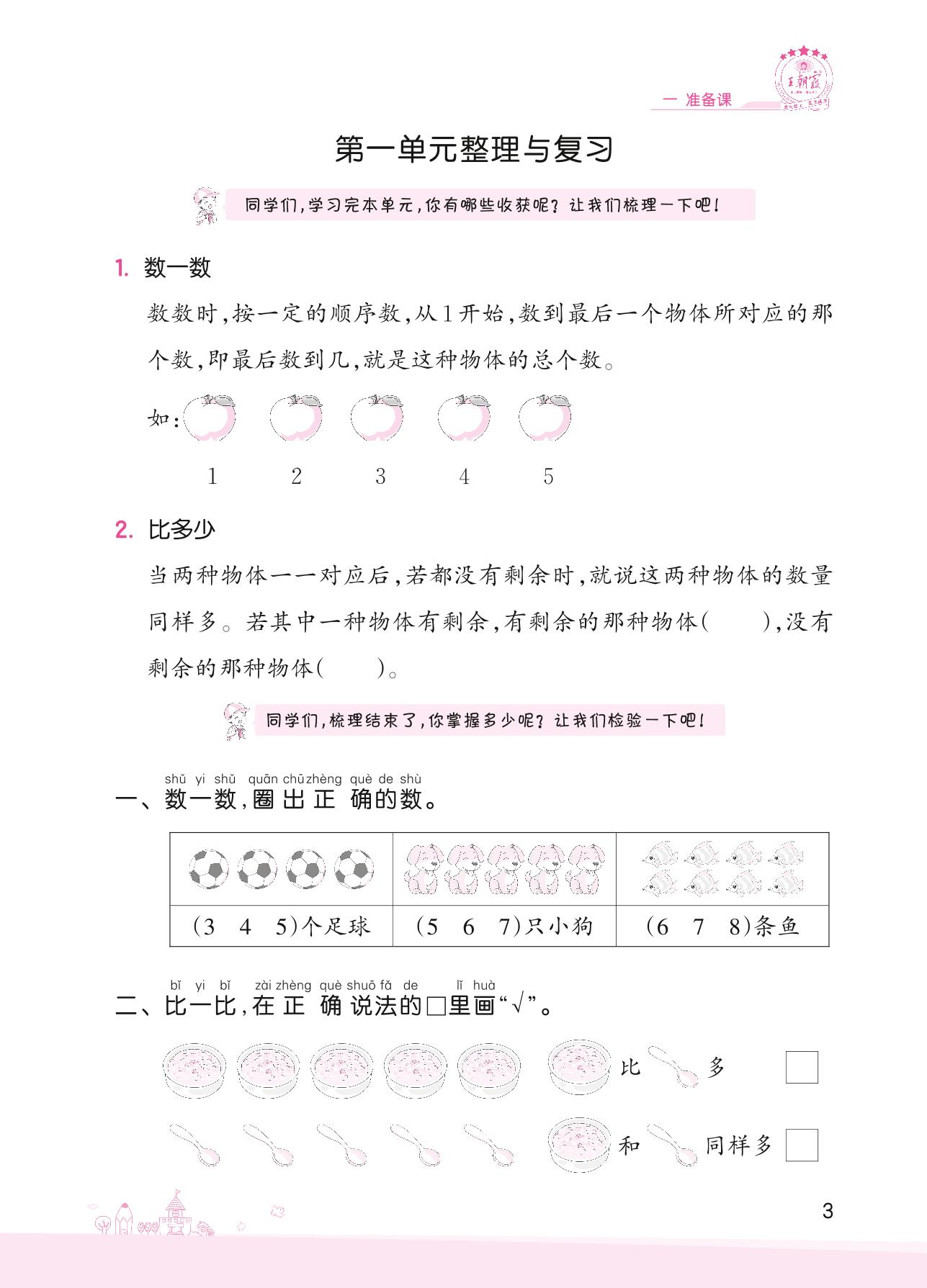 2022上册一年级数学人教版 一 准备课——第一单元整理与复习