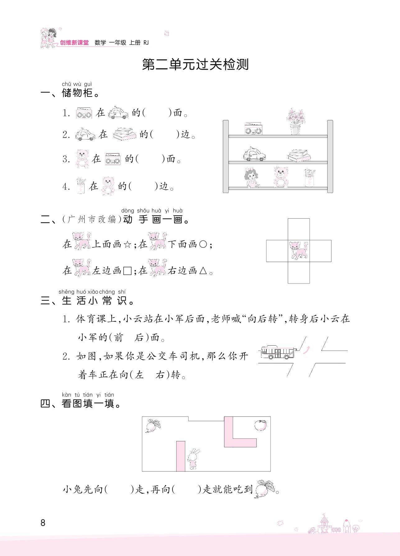 2022上册一年级数学人教版 二 位置——第二单元过关检测