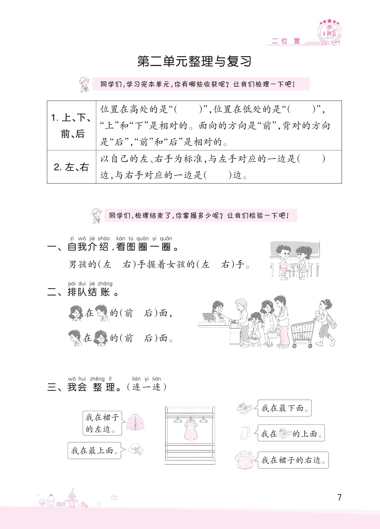 2022上册一年级数学人教版 二 位置——第二单元整理与复习