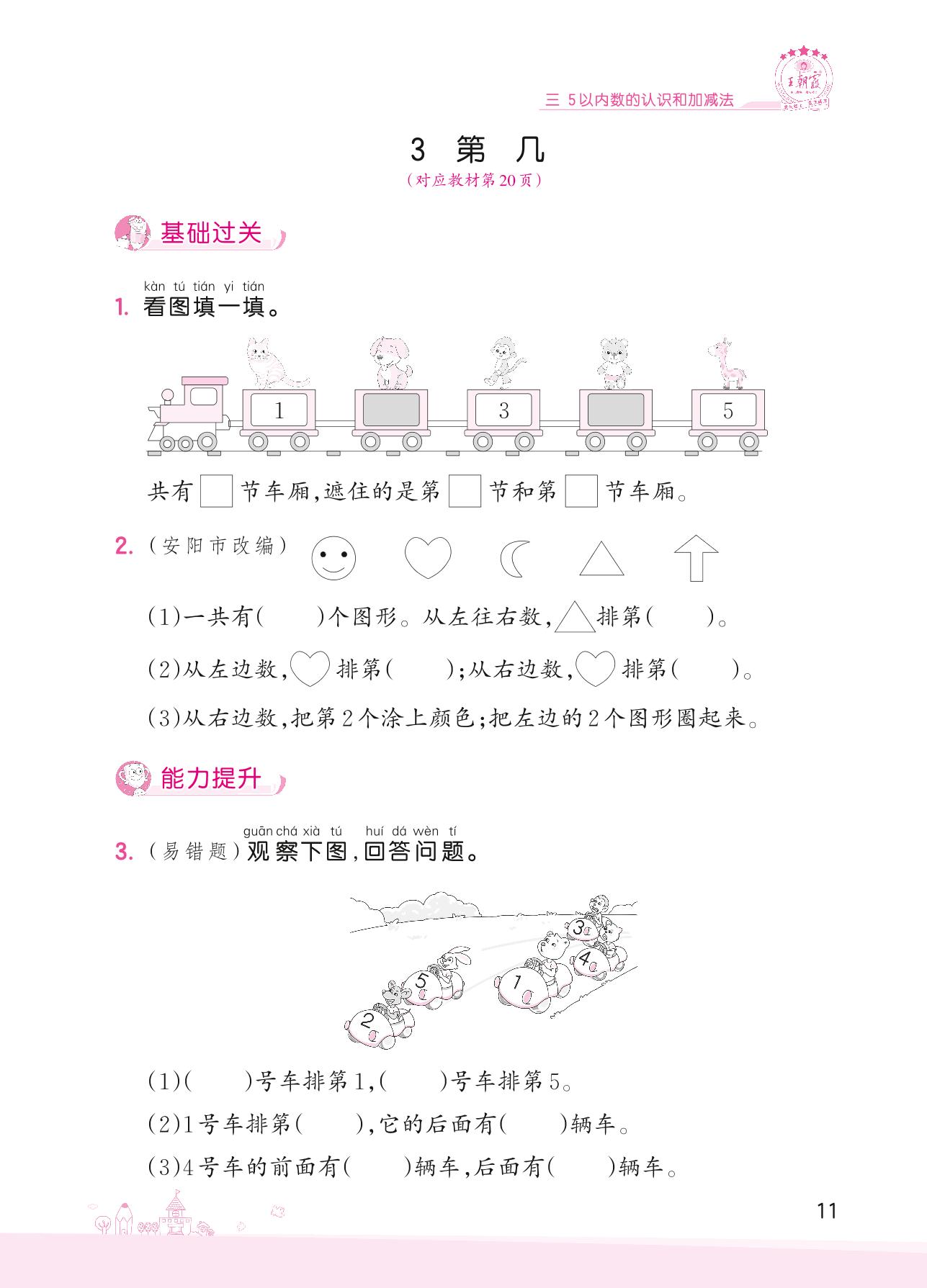 2022上册一年级数学人教版 三 5以内数的认识和加减法——3 第几