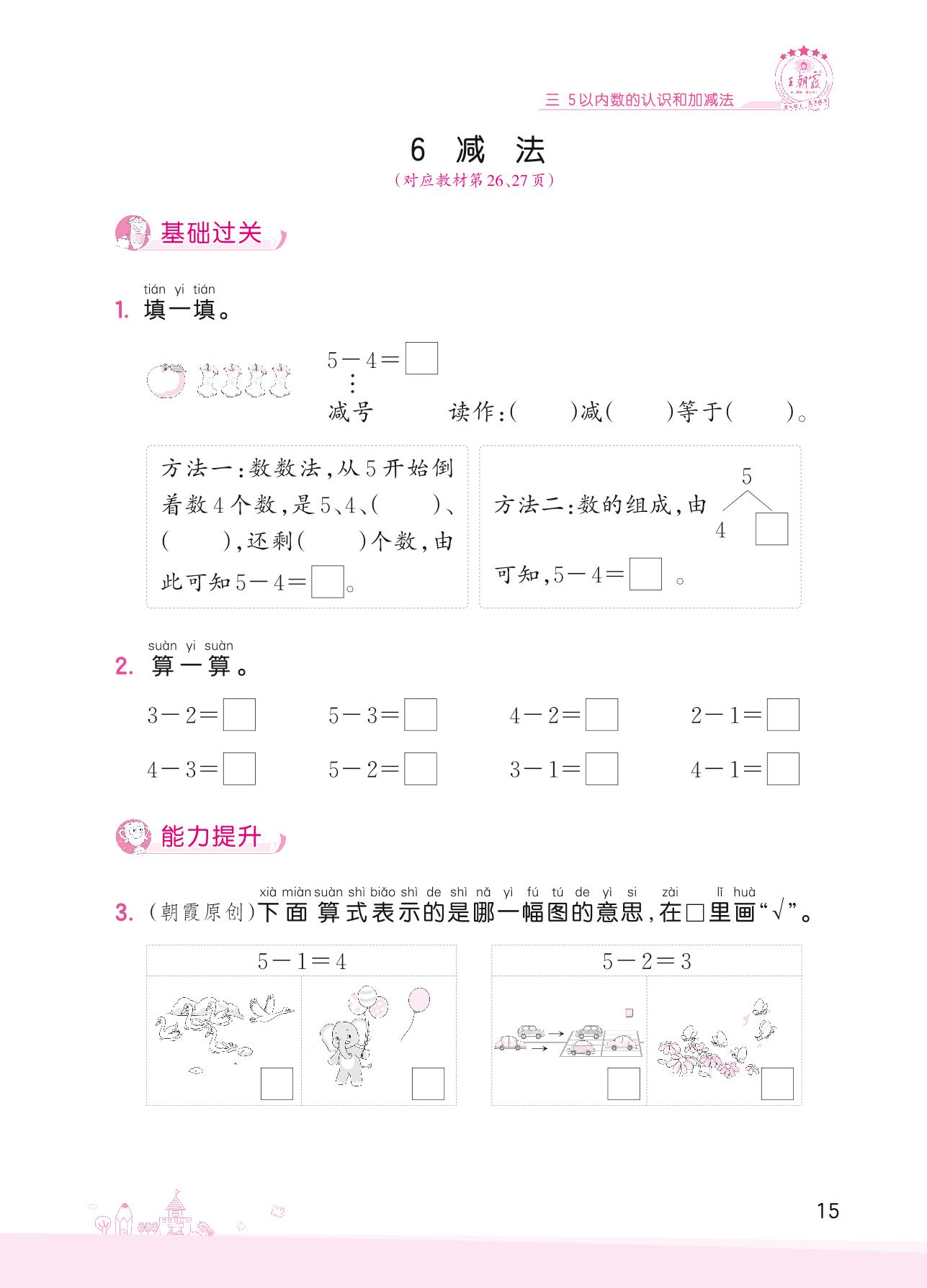 2022上册一年级数学人教版 三 5以内数的认识和加减法——6 减法
