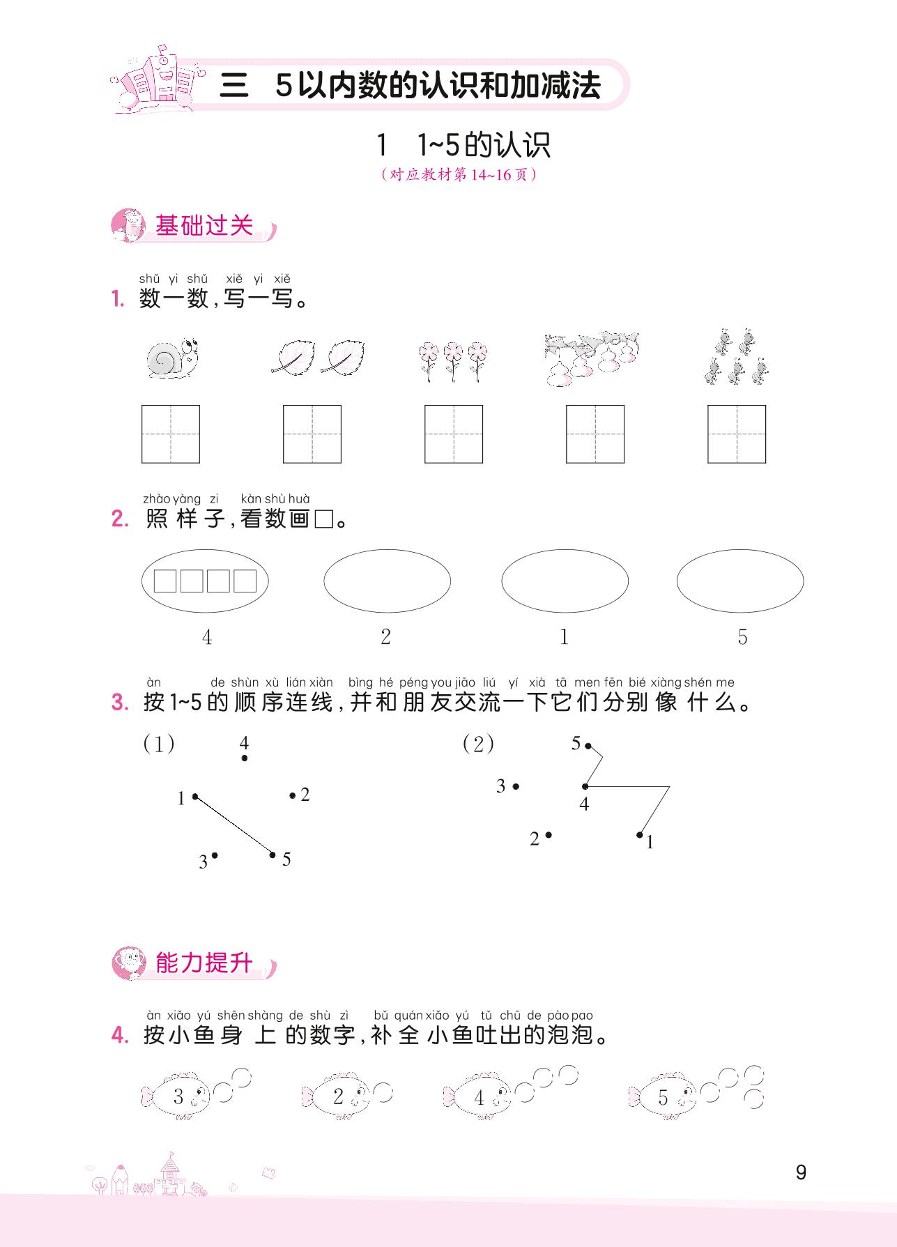 2022上册一年级数学人教版 三 5以内数的认识和加减法——1 1~5的认识