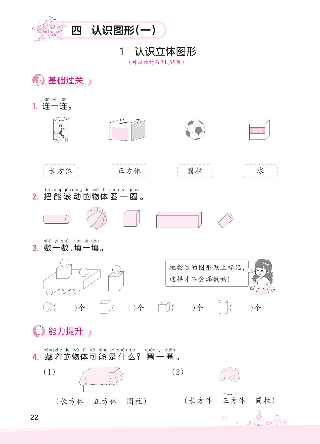 2022上册一年级数学人教版 四 认识图形(一)——1 认识立体图形