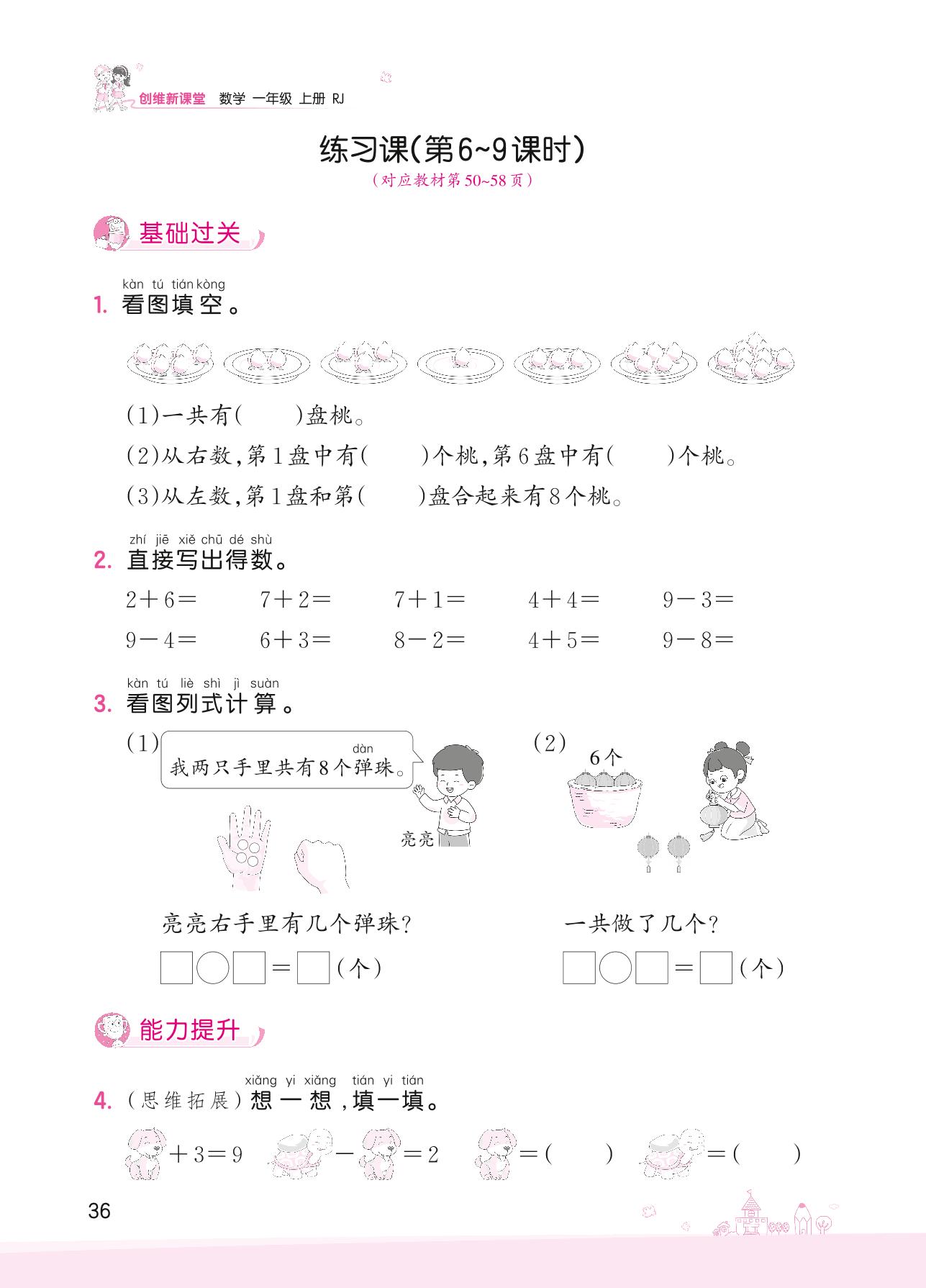 2022上册一年级数学人教版 五 6~10的认识和加减法——练习课(第6~9课时)