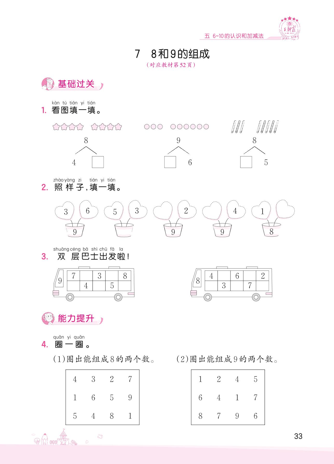 2022上册一年级数学人教版 五 6~10的认识和加减法——7 8和9的组成