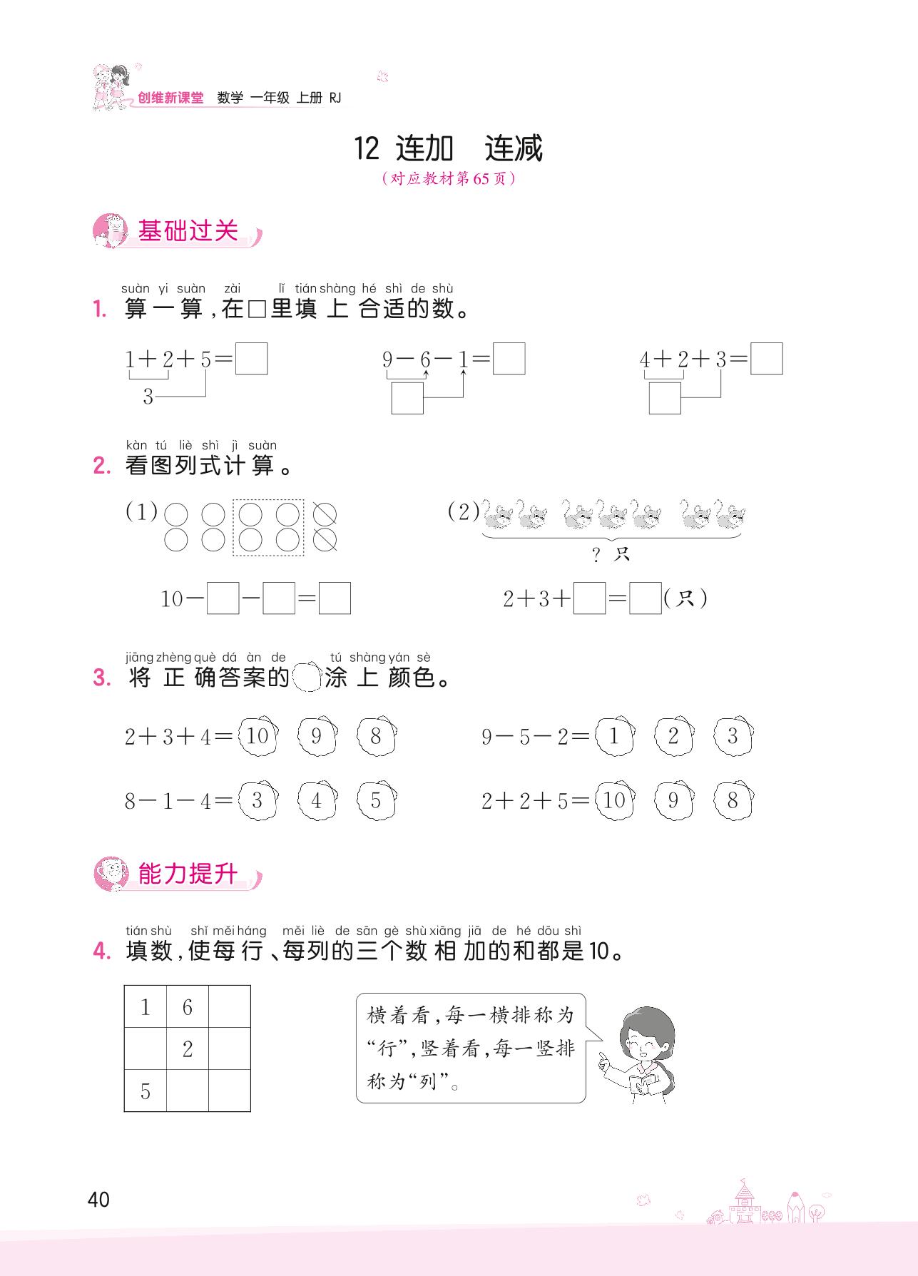 2022上册一年级数学人教版 五 6~10的认识和加减法——12 连加 连减