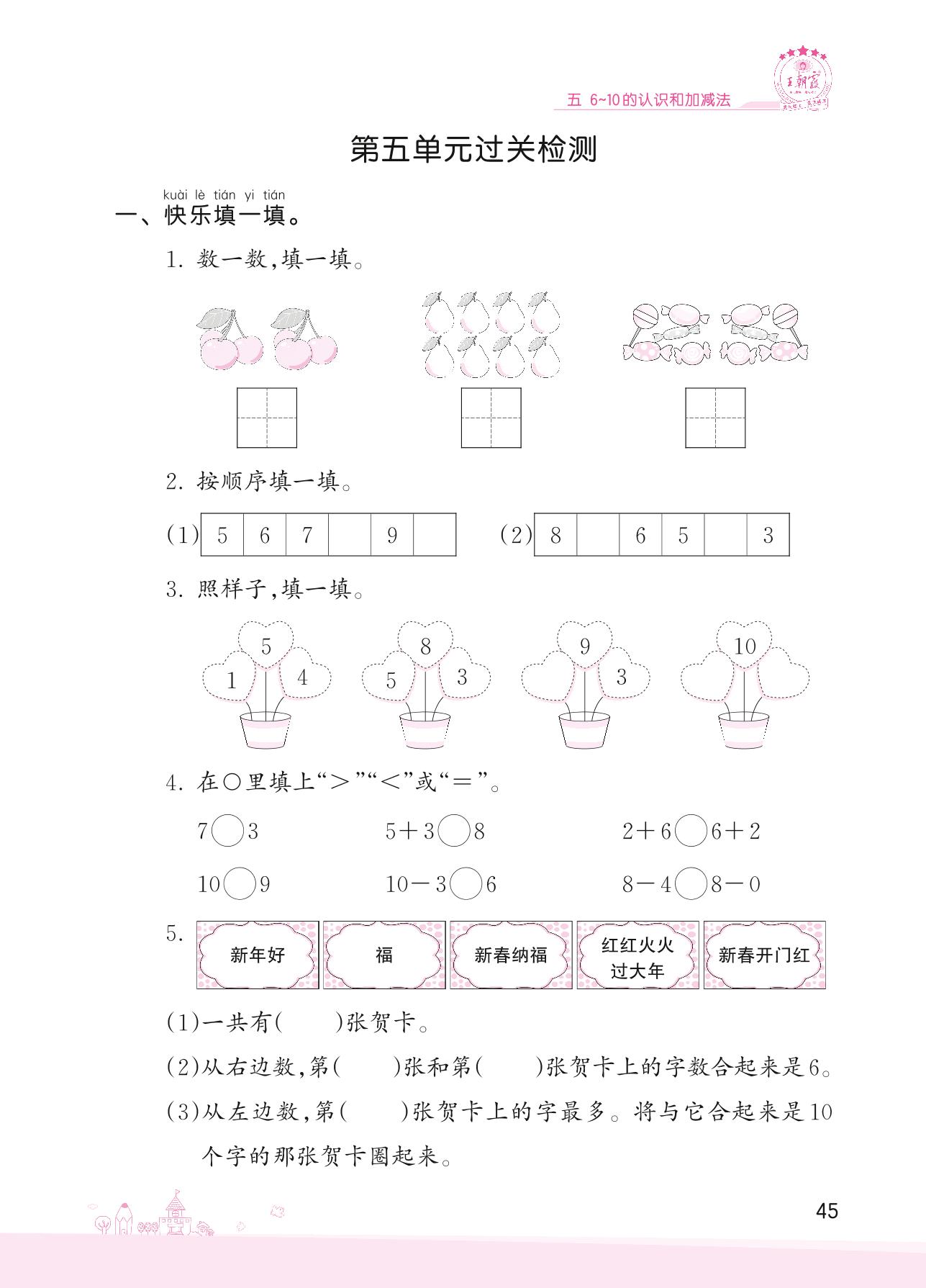 2022上册一年级数学人教版 五 6~10的认识和加减法——第五单元过关检测