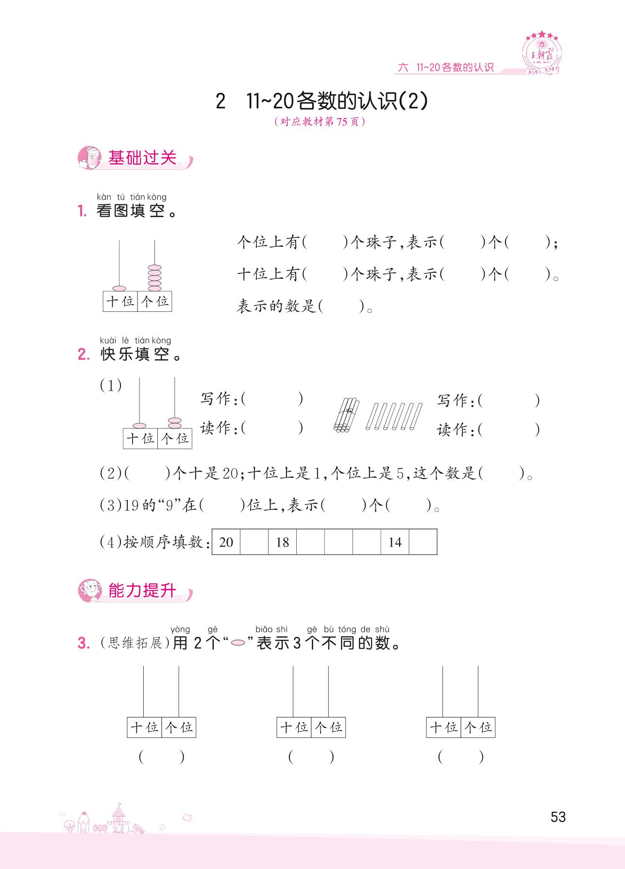 2022上册一年级数学人教版 六 11~20各数的认识——2 11~20各数的认识(2)