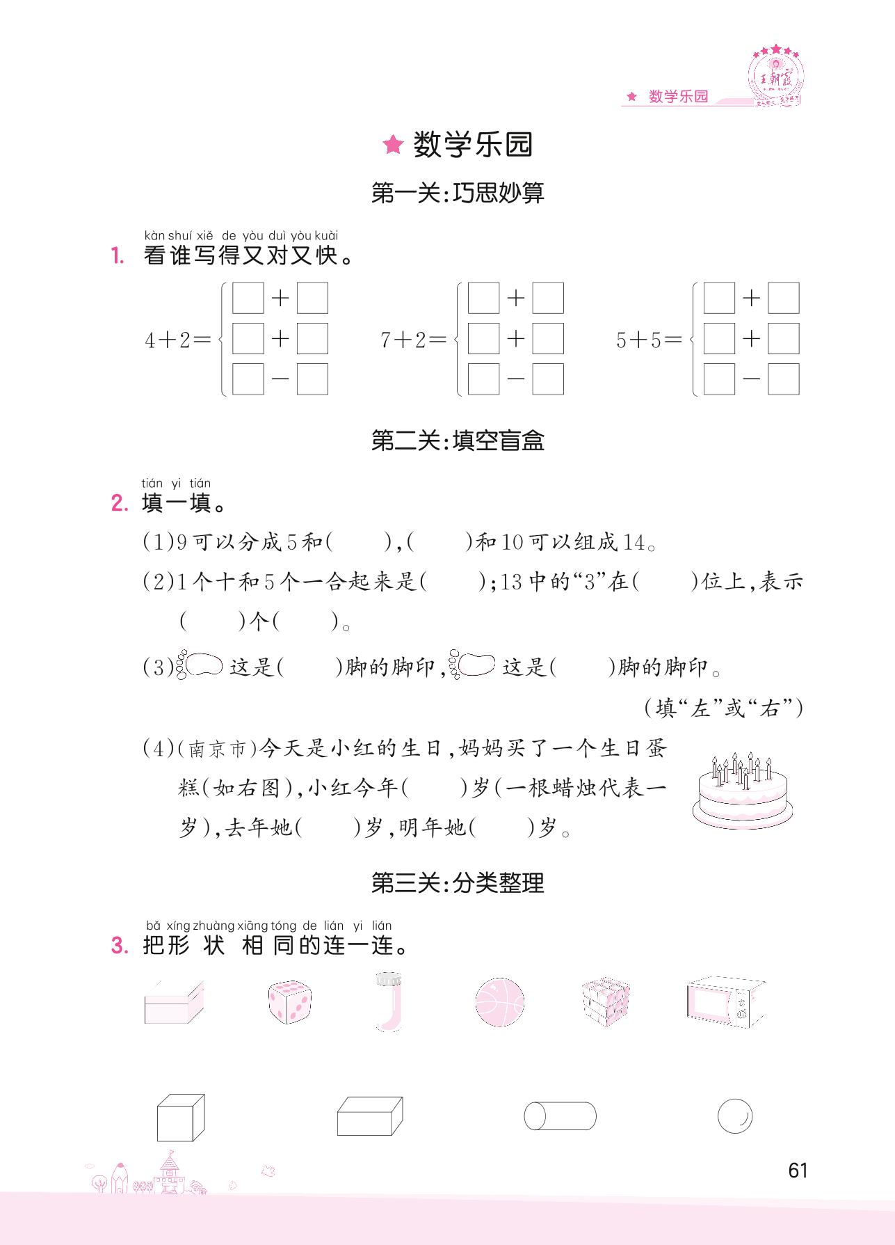 2022上册一年级数学人教版 六 11~20各数的认识——数学乐园