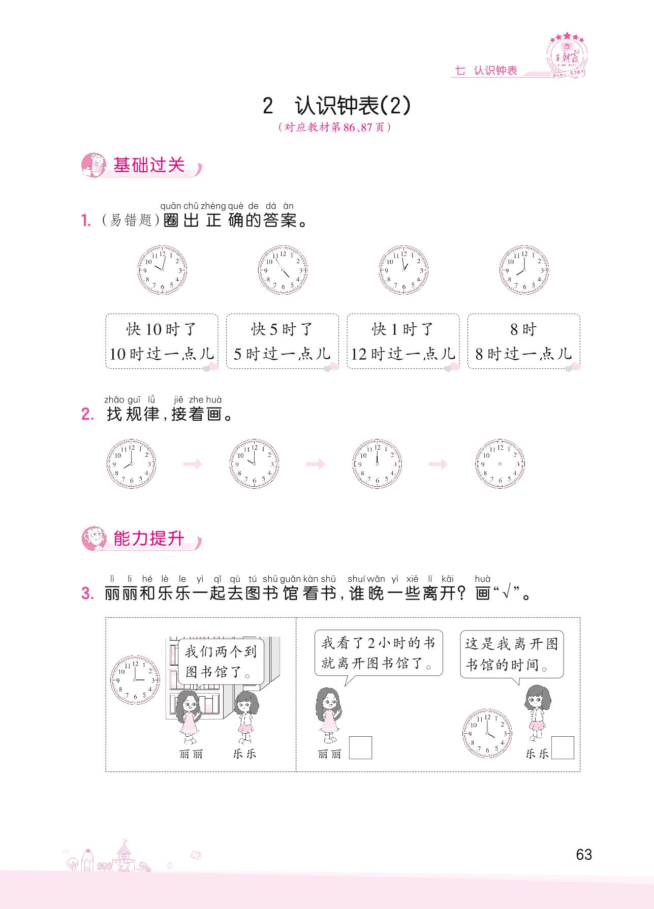 2022上册一年级数学人教版 七 认识钟表——2 认识钟表(2)