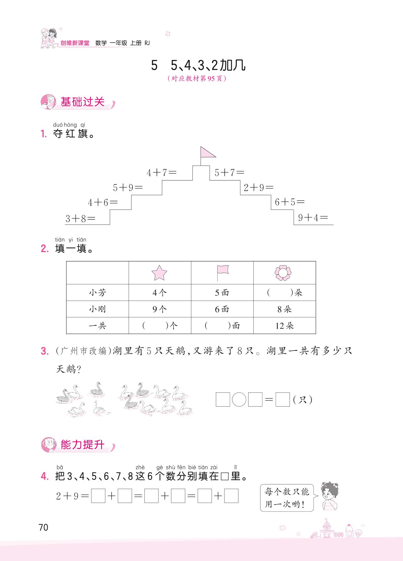 2022上册一年级数学人教版 八 20以内的进位加法——5 5、4、3、2加几