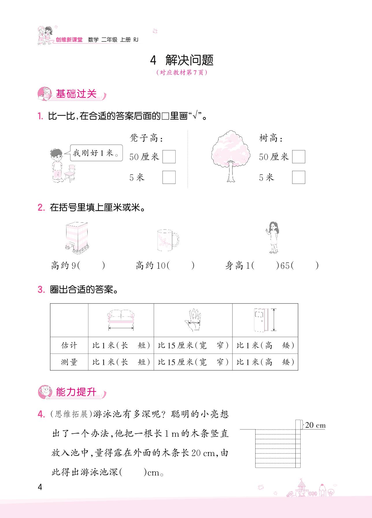 2022上册二年级数学人教版 一 长度单位——4 解决问题