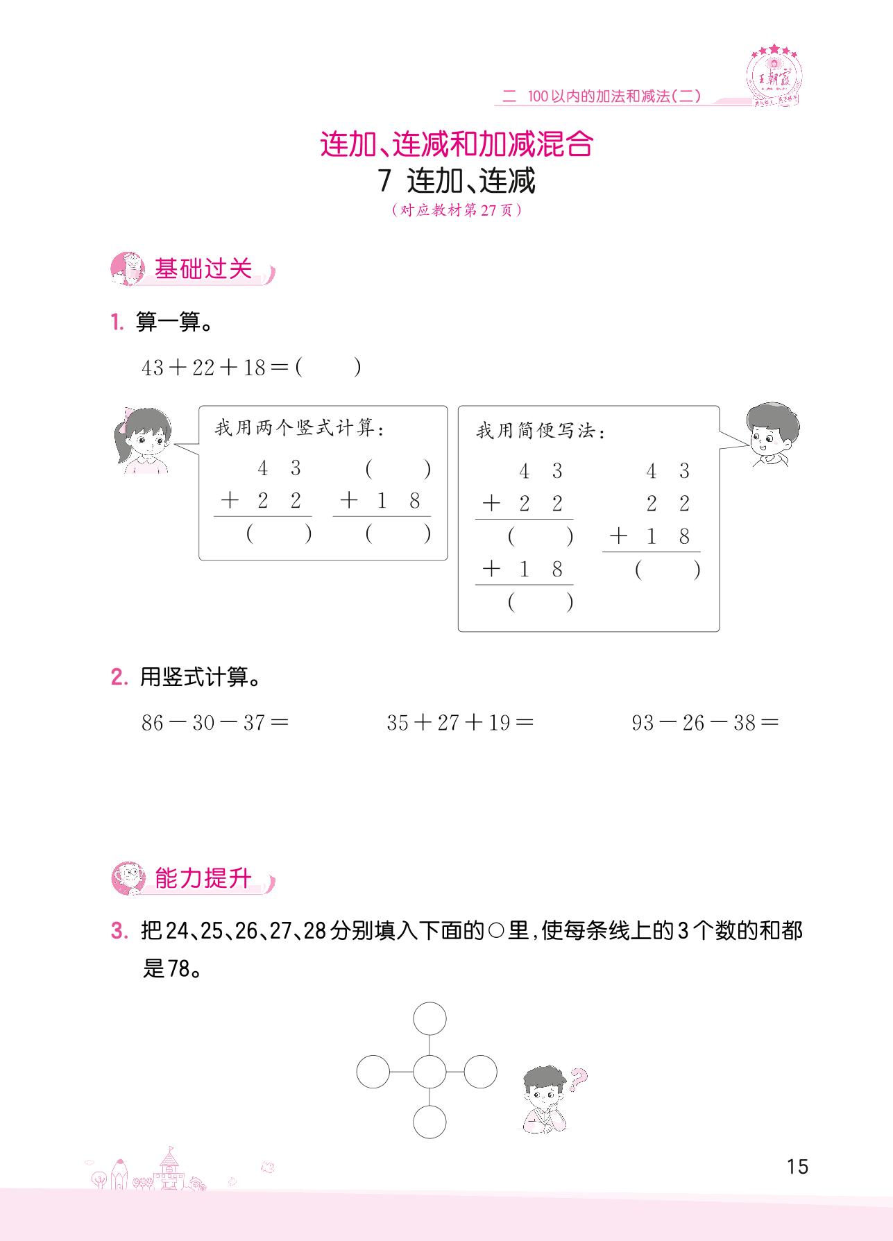 2022上册二年级数学人教版 二 100以内的加法和减法(二)——7 连加、连减